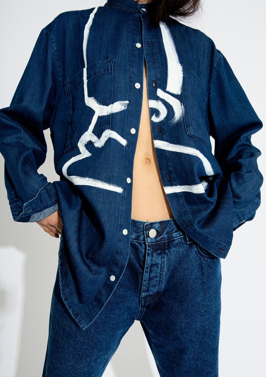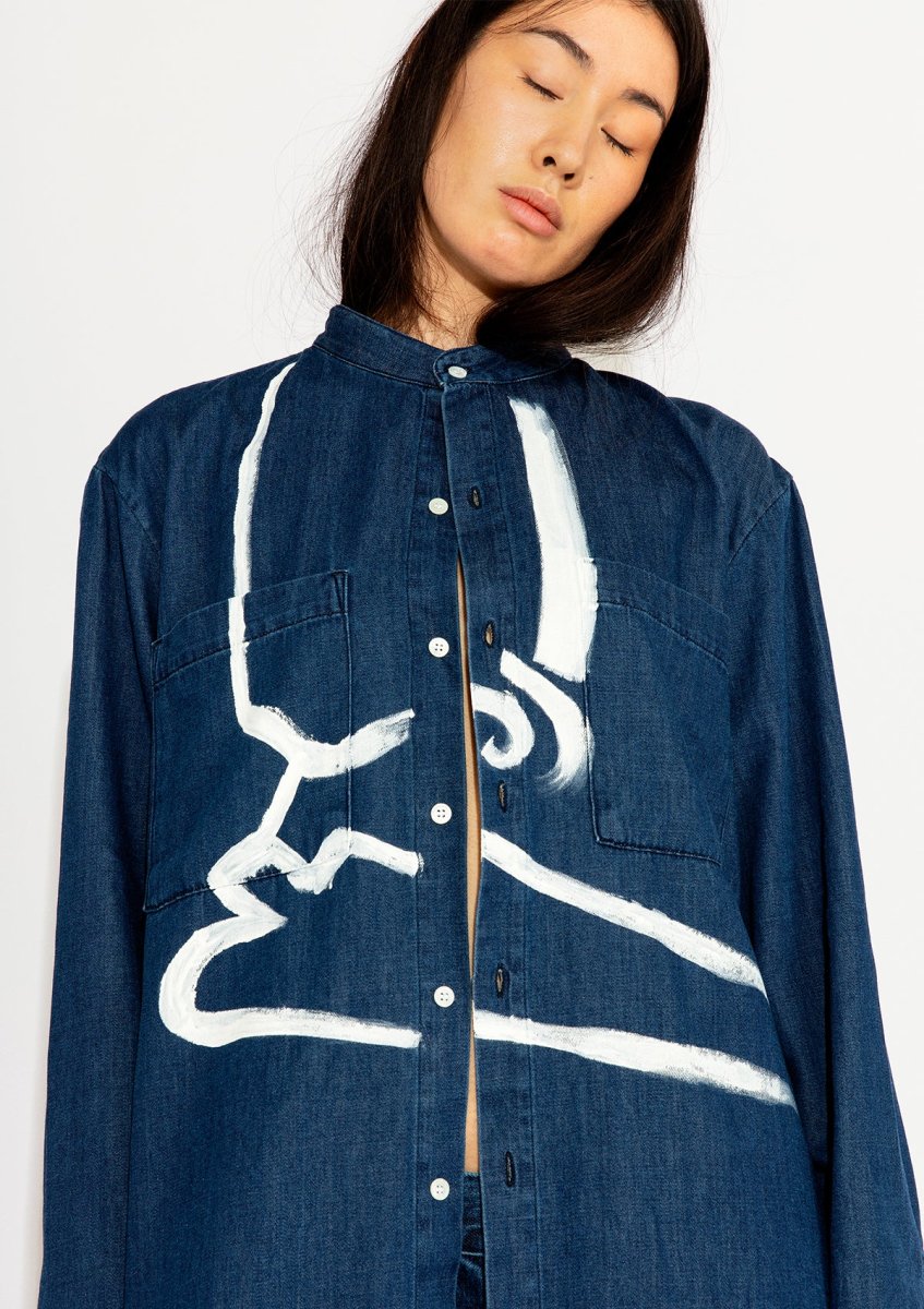 L’artiste franco-japonaise Tiffany Bouelle, fidèle amie de la marque, a été invitée à revisiter notre chemise SPRING. Inspirée par sa série « Portrait des enfants de la mer », l’artiste a peint des portraits uniques sur la toile indigo de nos chemises pour les ériger en oeuvre d’art à porter.