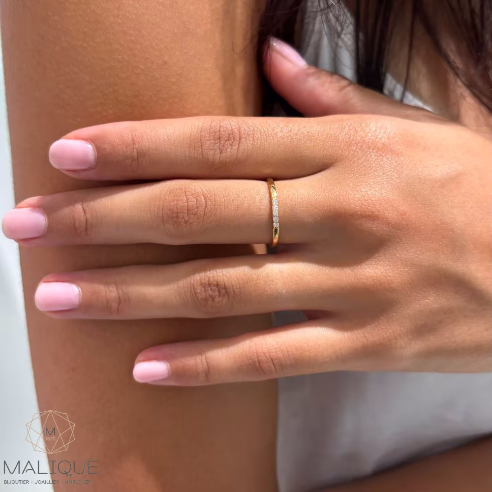 Alliance fine pour femme en or jaune et 5 diamants