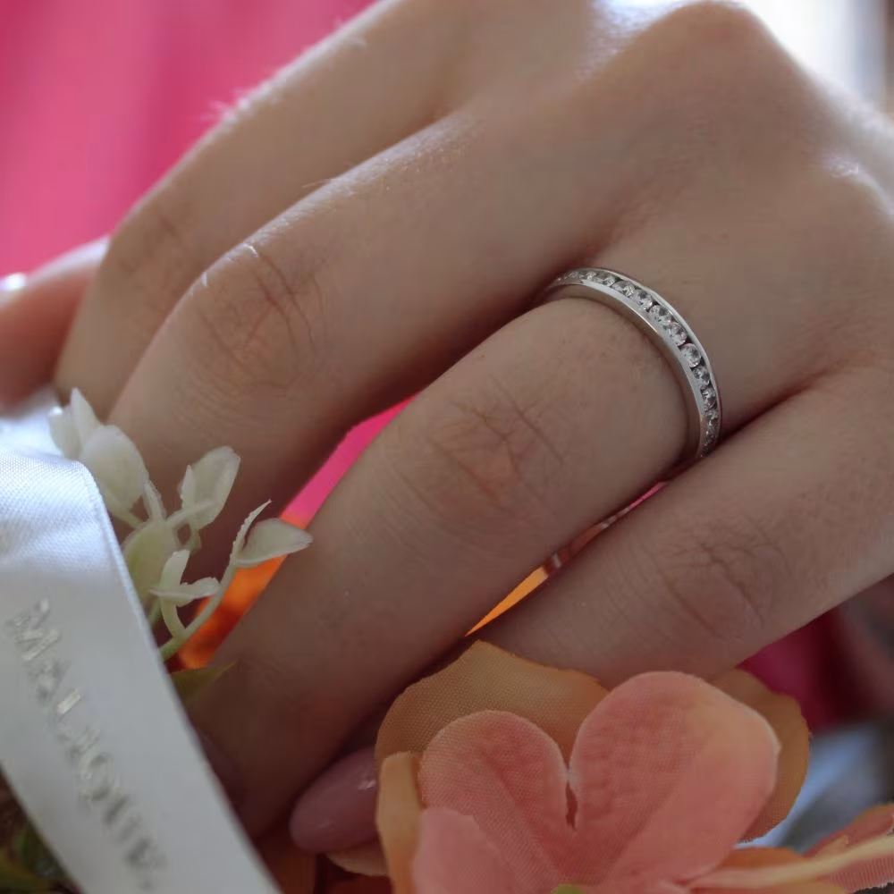 Découvrez notre alliance diamant Bora Bora tour complet en or blanc rhodié 18 carats
