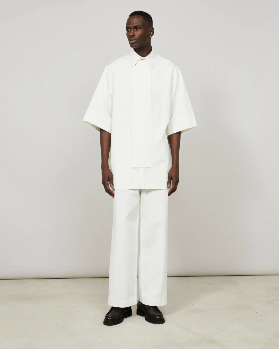 Pièce iconique de notre garde-robe d’été, cette grande chemise est confectionnée dans un mélange de coton et de lin, au toucher soyeux et au tombé structuré. Son volume généreux, ses manches amples et sa patte large à l’effet plastron lui confèrent une allure au chic naturel. Cette chemise présente également un col classique, des poches […]