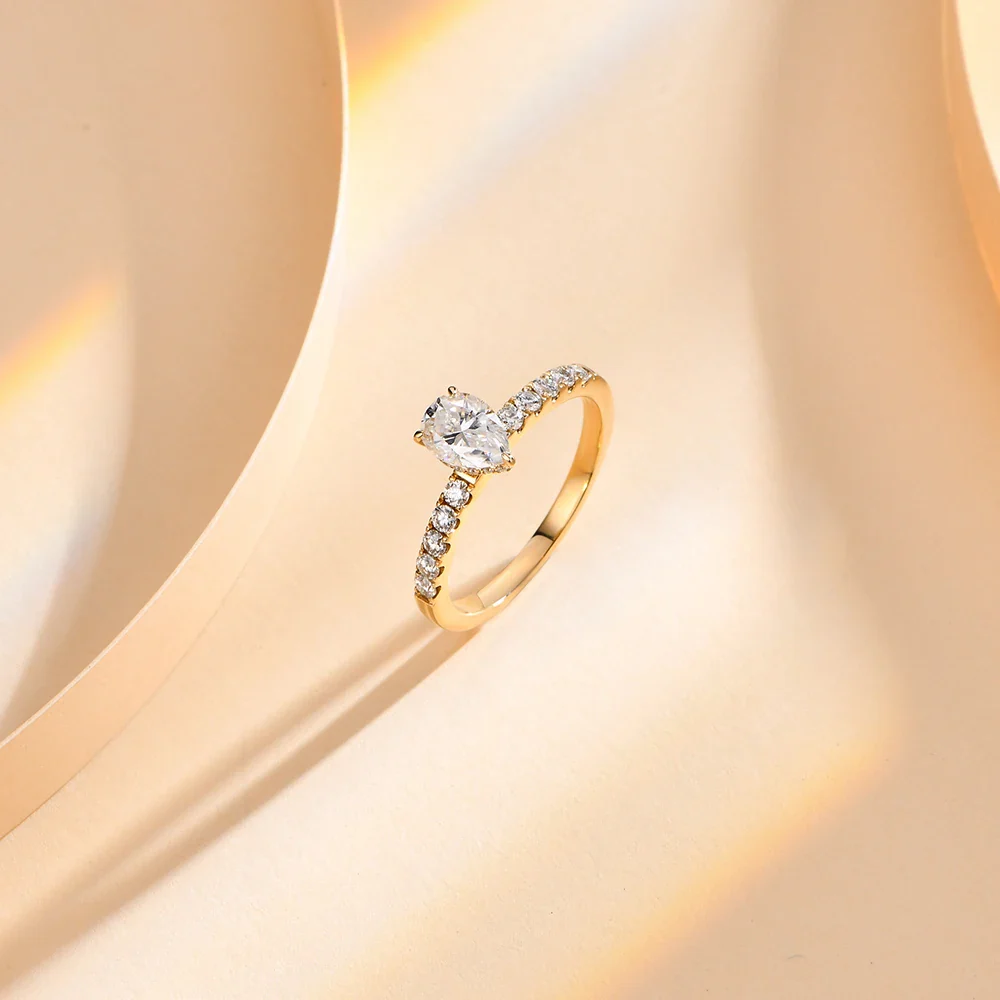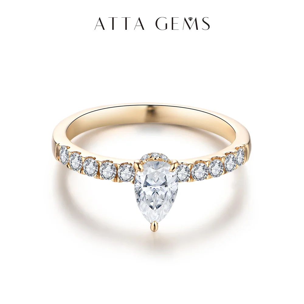Attagems New 1ct Moissanite 10k 14k Yellow Gold Pear Shape Engagement Ring Promise Wedding Rings For Women Trends Jewelry Gift