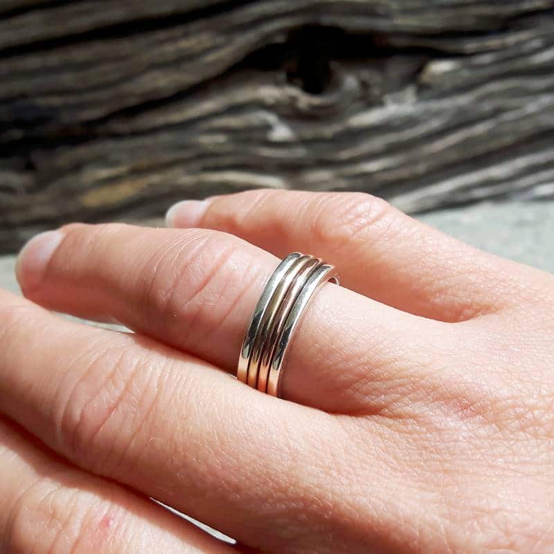 - Matériau principal argent + 2 anneaux fins en laiton et cuivre