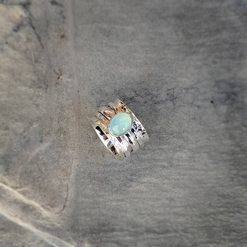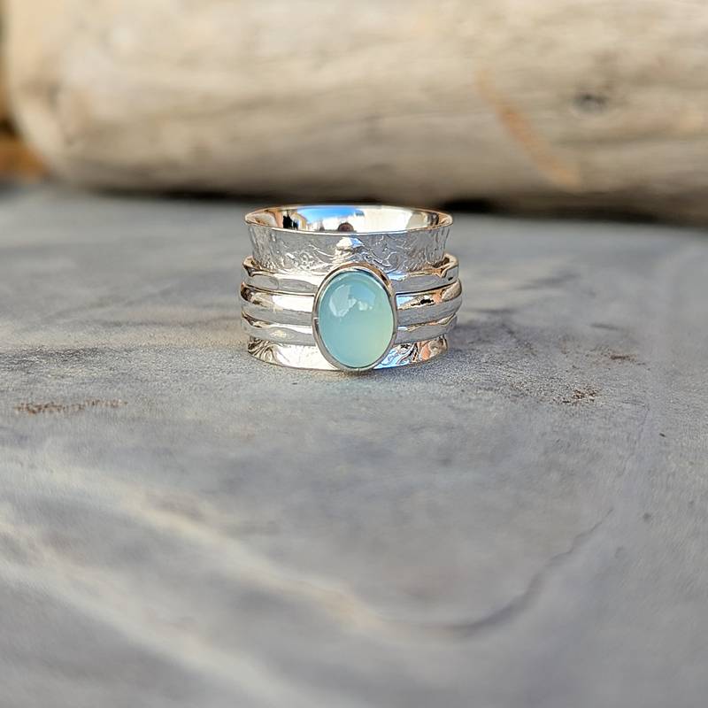 Bague anti stress argent et calcédoine aqua