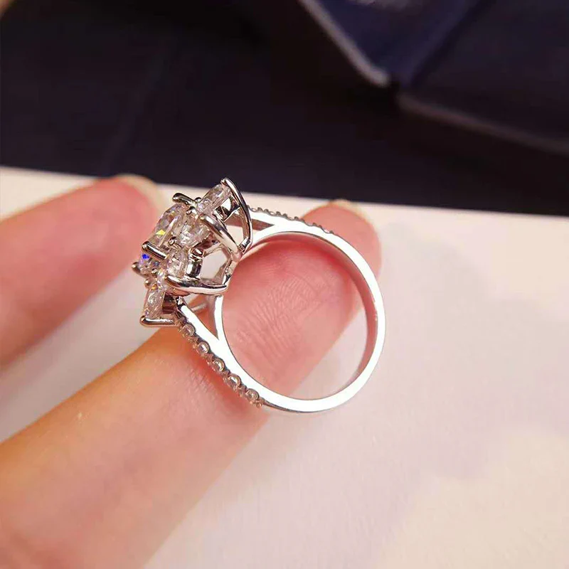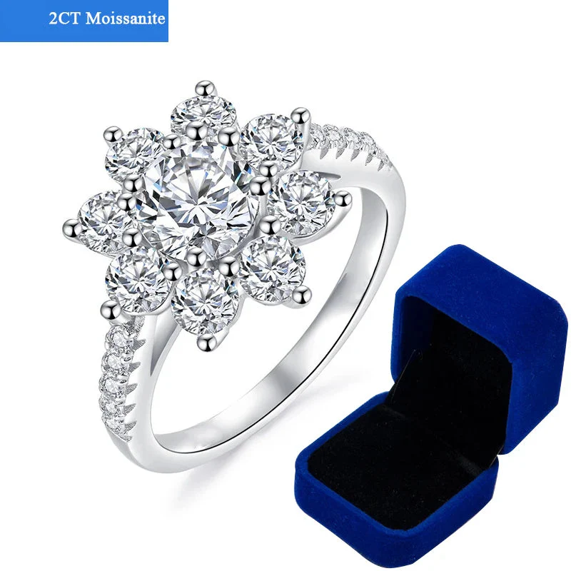 Découvrez l’éclat inégalable de cette bague argent femme originale, une pièce qui capture la lumière et les cœurs. Son design distinctif en forme de fleur, avec un grand cristal de moissanite central entouré de pétales scintillants, crée une allure spectaculaire et sophistiquée. L’anneau, serti de petites pierres additionnelles, ajoute une touche d’éclat subtile et continue. Fabriquée en argent sterling 925 et pesant seulement 2,3 g, elle est à la fois légère et raffinée.