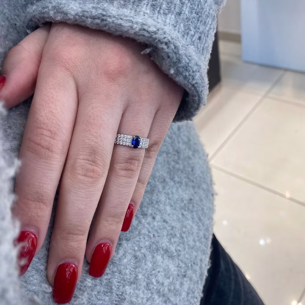 Bague Argent Pierre Bleue Ovale & Blanches