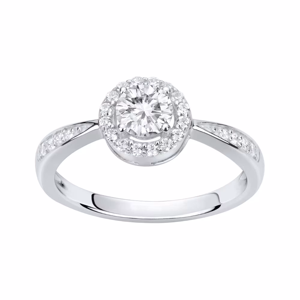 Elegance et raffinement pour cette bague en argent 925/1000 de type solitaire accompagné. Doté d’un pavage mutli oxydes, cette bague viendra habiller votre doigt avec brillance