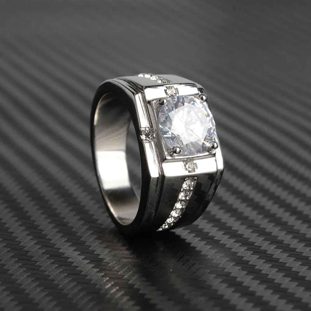Cette magnifique bague chevalière homme est un bijou à la fois élégant et moderne. Elle est de forme rectangulaire, avec une grande pierre brillante au centre, et sur les côtés, une bande de pierres scintillantes. Son design unique et son allure imposante en font un accessoire de mode pour les hommes qui osent se démarquer.