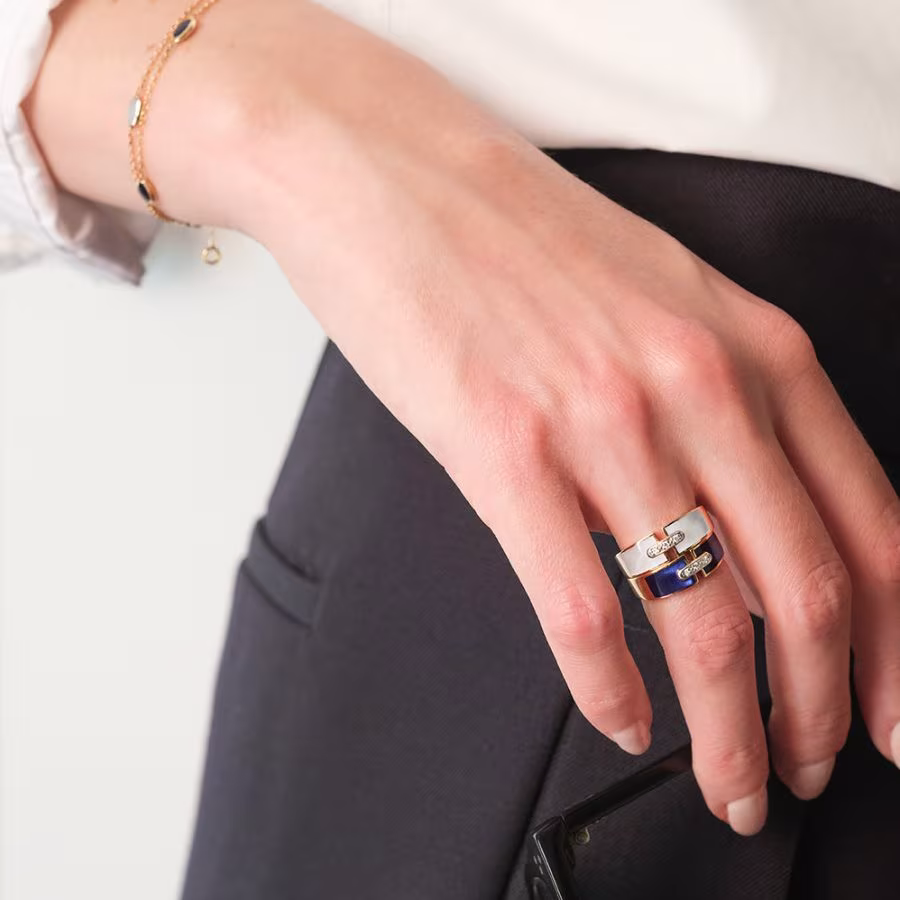 La bague Clozeau collection Héléna incarne l’élégance contemporaine de la joaillerie française. Fabriquée en or rose 750/1000, elle se distingue par son dessus en résine nacrée rouge, lumineux et délicat.