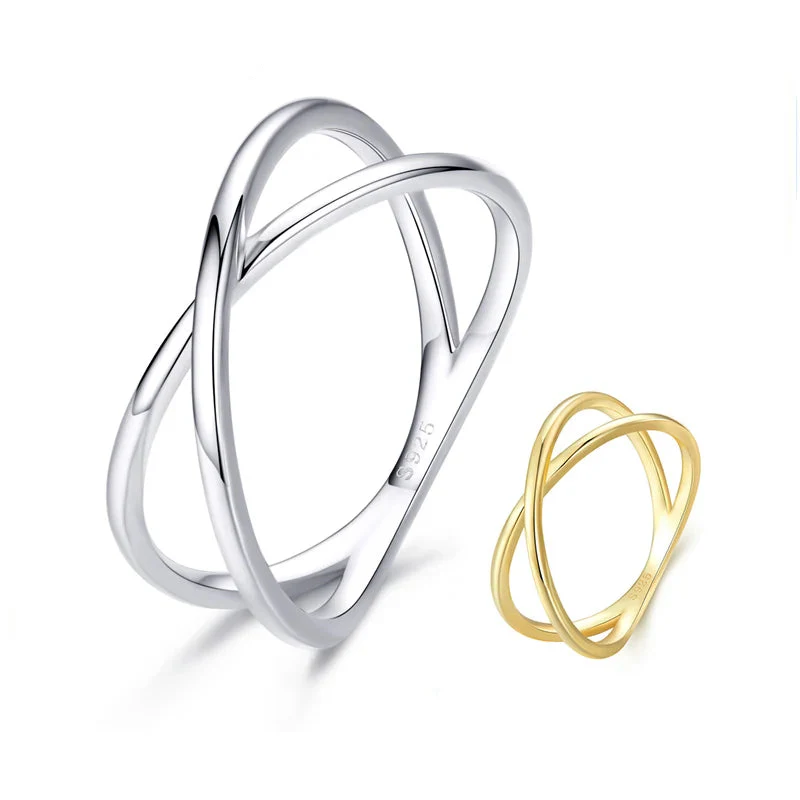 Laissez-vous captiver par l’élégance minimaliste et le design aérien de cette magnifique bague double croisée, un bijou qui incarne la grâce et la modernité. Dès le premier regard, cette pièce séduit par ses lignes pures et fluides qui s’entrecroisent délicatement, formant une silhouette en X résolument chic. L’image met en lumière deux versions de ce modèle raffiné : une finition d’un éclat argenté miroir et une autre d’une chaude teinte dorée.