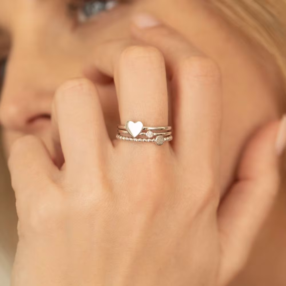 Jolie bague La Garçonne Diamant en argent rhodié 925/1000 composée de 3 anneaux séparables. L’un est en motif perlé, l’autre comprend un diamant serti clos de 0.015ct et le dernier un motif cœur plat.[/vc_column_text][/vc_column][/vc_row][vc_row][vc_column]