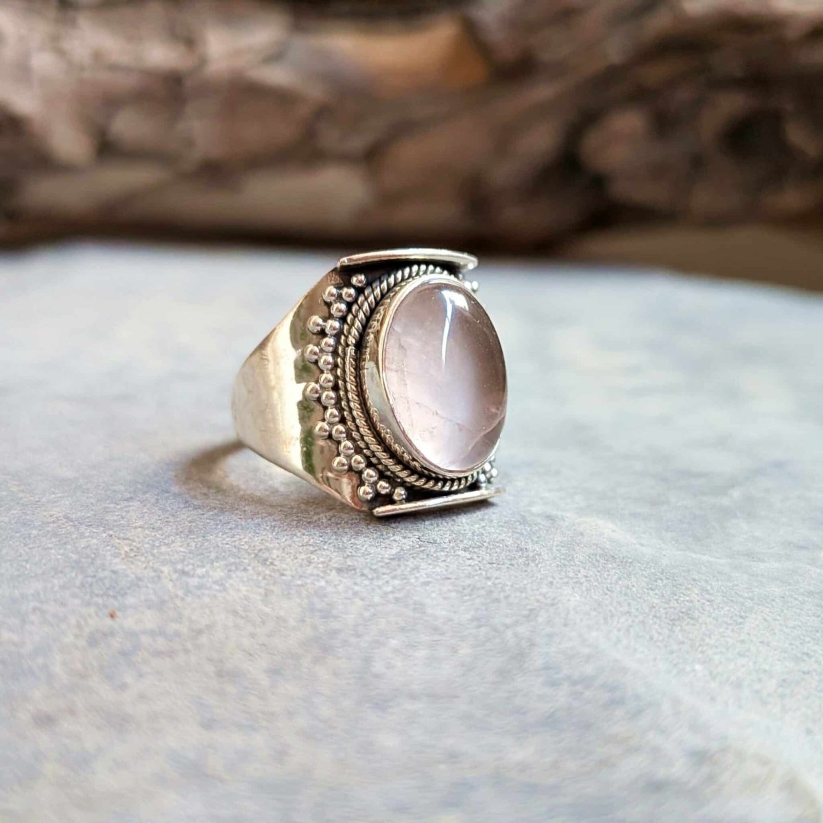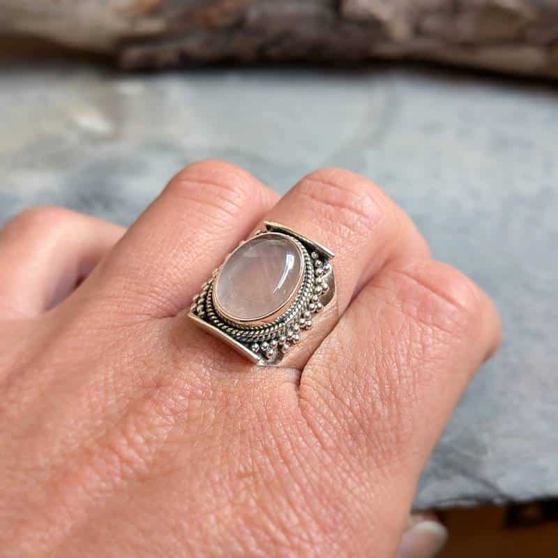 Bague ethnique quartz rose argent DOUCEUR