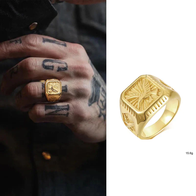 Découvrez la beauté imposante de cette bague homme pas cher au design unique. Son motif central en forme d’aigle, finement sculpté, repose sur un anneau large et épais. Fabriquée en acier inoxydable, un matériau durable et résistant, cette bague est conçue pour durer. Elle est également 100 % hypoallergénique, sans plomb, ni nickel, ce qui la rend parfaite pour les peaux sensibles.