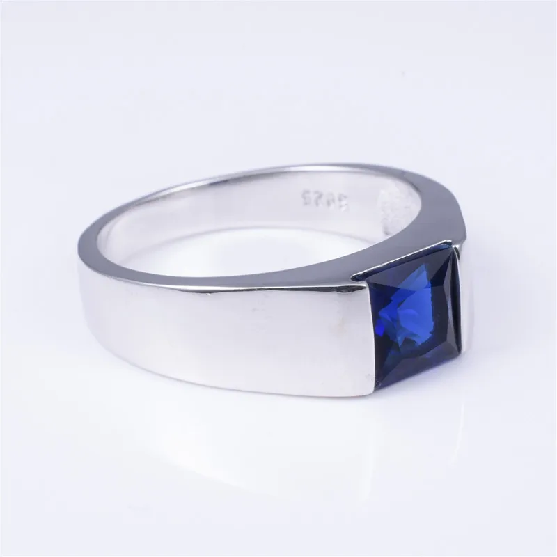 Cette pièce spécifique, est le modèle que nous nommons « Force Tranquille ». Il se distingue par un design épuré et minimaliste. L’anneau en métal poli présente une large et confortable bande, accentuée par une monture carrée qui met en majesté la pierre. Le Saphir, d’un bleu profond, est taillé en forme rectangulaire et est incrusté de manière discrète mais affirmée dans la structure argentée. L’absence de fioritures concentre toute l’attention sur la brillance de la pierre principale et la pureté de la ligne.