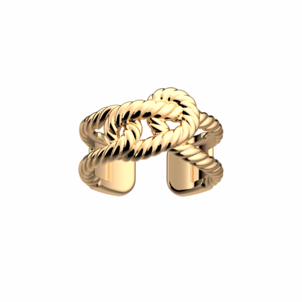 La bague Les Georgettes Cordage s’inspire de l’univers marin et joue sur les contrastes entre lignes ajourées et reliefs travaillés. Conçue en laiton doré ou argenté, elle affiche un motif entrelacé qui rappelle les torsades des cordages nautiques, offrant à ce bijou une touche à la fois moderne et intemporelle.