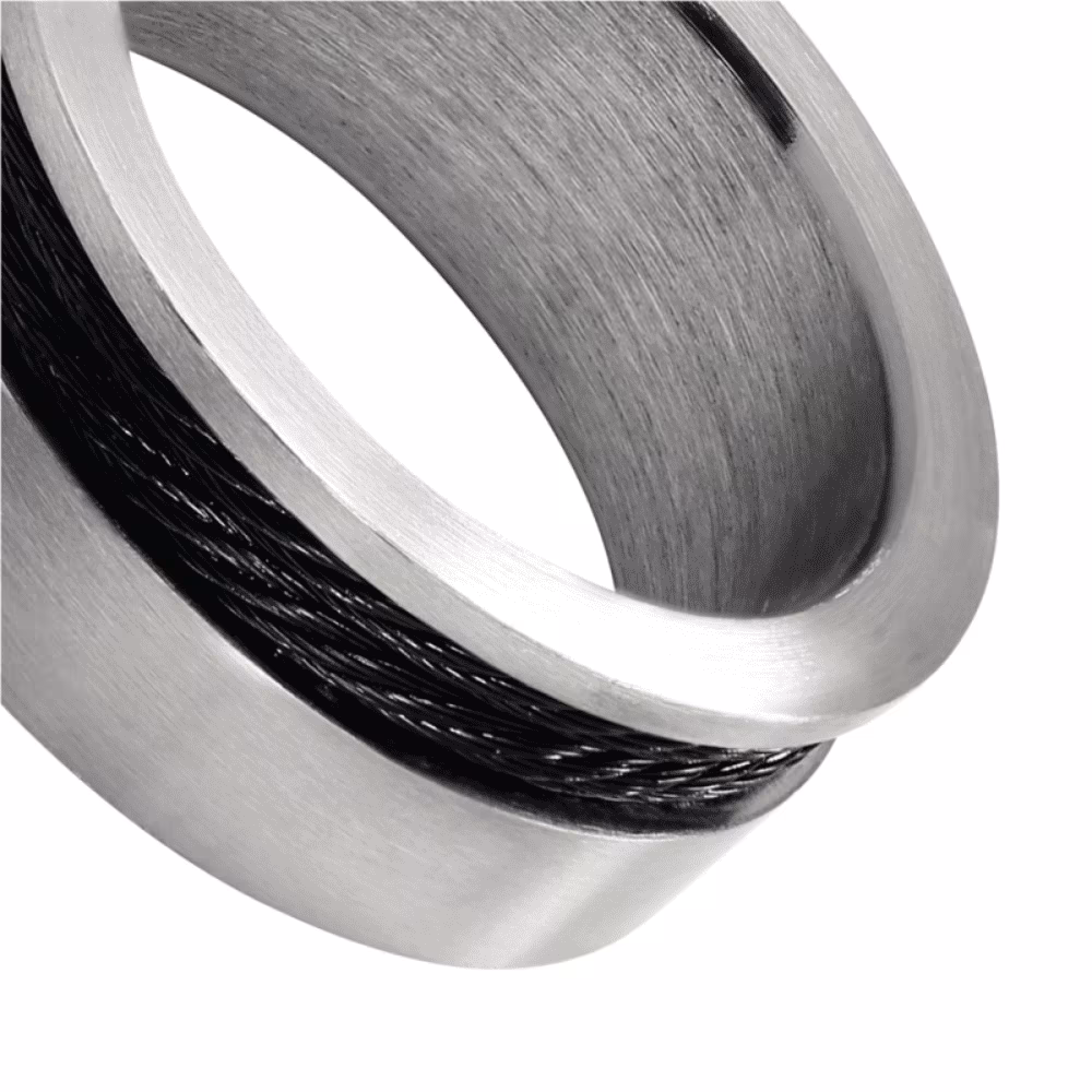Bague Acier Brillant 3 Rangs & 2 Câbles