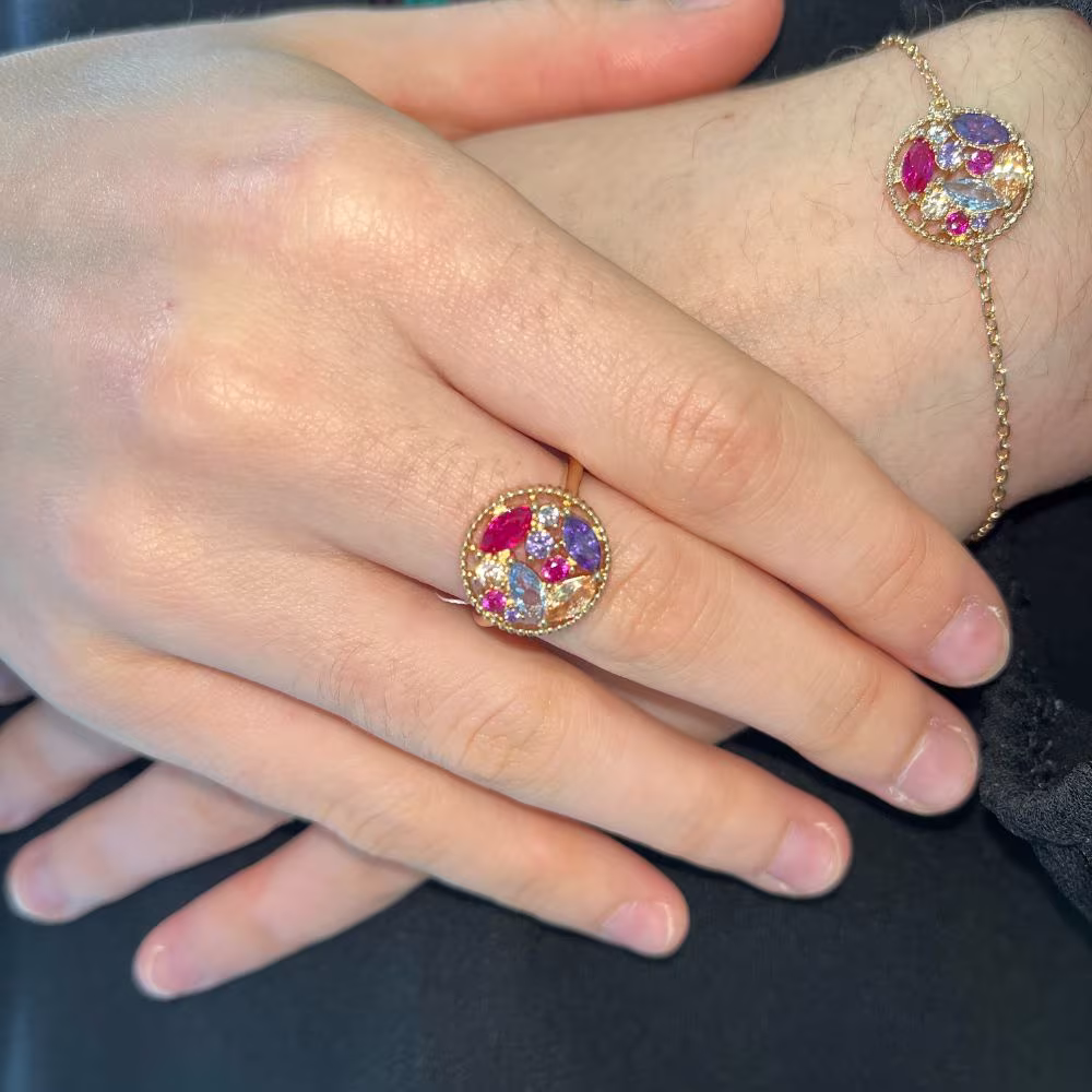 Bague Ronde et Oxydes Colorés Plaqué Or