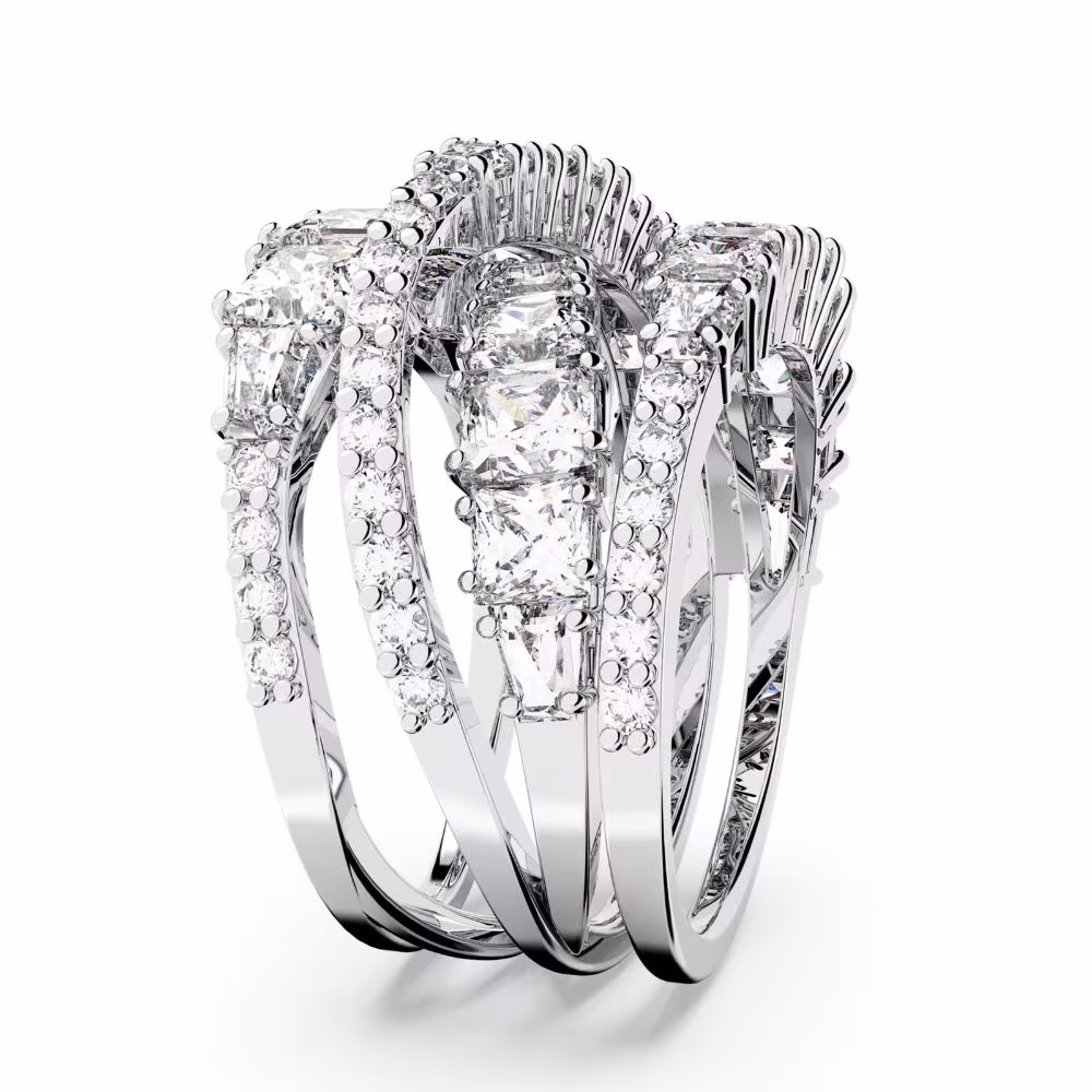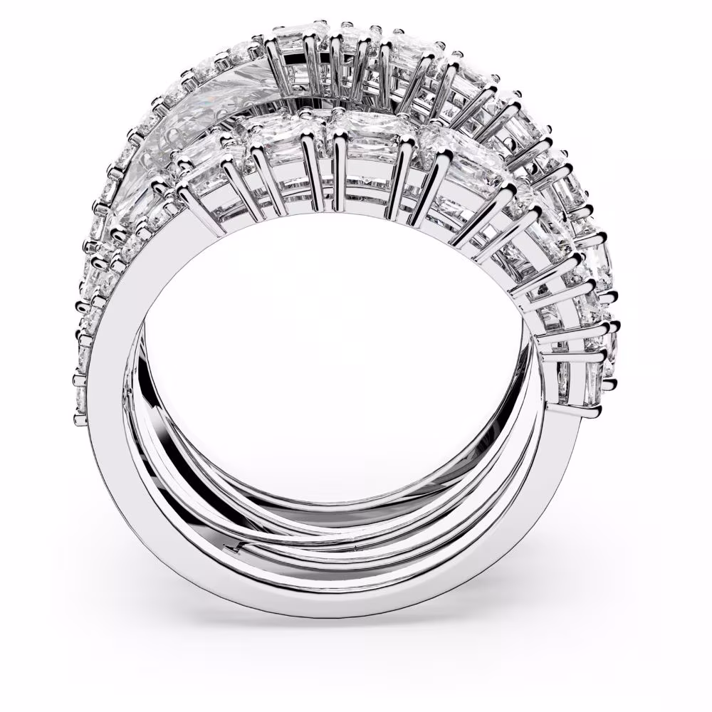 Bague Swarovski Hyperbola, rhodiée, blancs, tailles variées