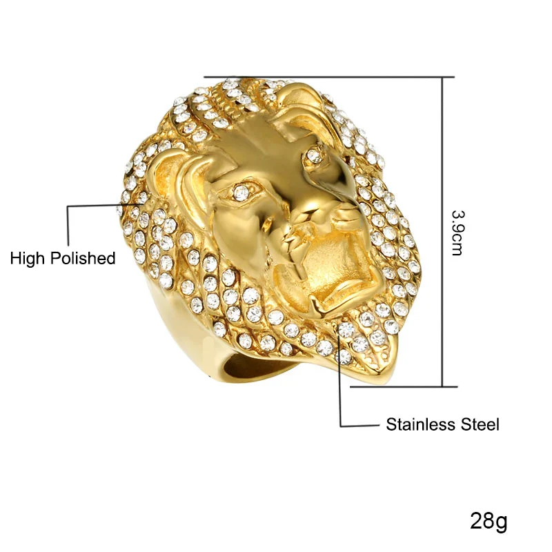 Cette bague pour hommes est une véritable œuvre d’art, avec une tête de lion sculptée avec un grand souci du détail. Les yeux du lion sont deux petites pierres, tandis que sa crinière et l’anneau sont sertis de multiples pierres brillantes, ce qui ajoute une touche de luxe et de splendeur. Fabriquée en acier titane, elle est à la fois robuste et légère. Son alliage, conforme à la norme environnementale, est sans plomb, sans nickel et sans cadmium, ce qui la rend sûre à porter au quotidien.