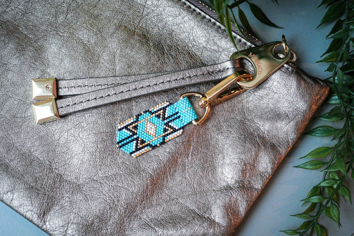 Style chic contemporain inspiré du cosmos Bijou 100% tissé à la main avec amour ! Matériaux :– Perles Miyuki Delicas 11/0 – Mousqueton pivotant en zamac, résistant aux rayures et à la décoloration pour une longue durée Longueur 9 cm / Largeur 2,2 cm Technique du tissage façon Brickstitch, qui consiste à enfiler les perles […]