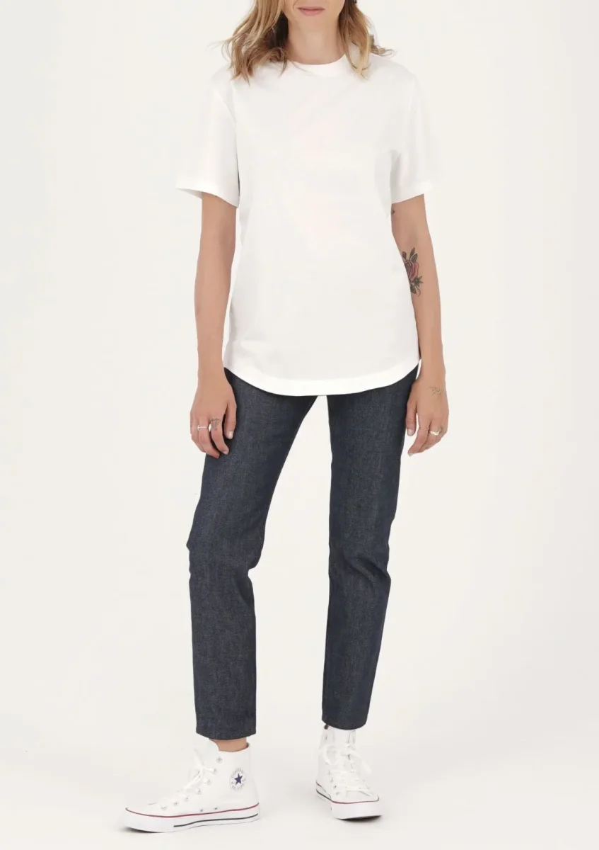 Ce T-shirt est un modèle unisexe réalisé dans un jersey de coton égyptien de poids moyen, à la main compacte et très douce. Ce T-shirt à manches courtes a une coupe droite classique et une encolure ronde à finition côtelée. Il présente un ourlet liquette surpiqué, signature de la marque. Ce modèle a été dessiné, […]