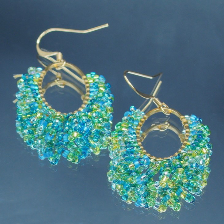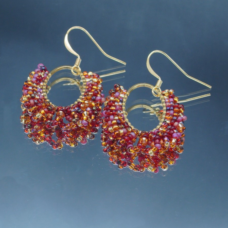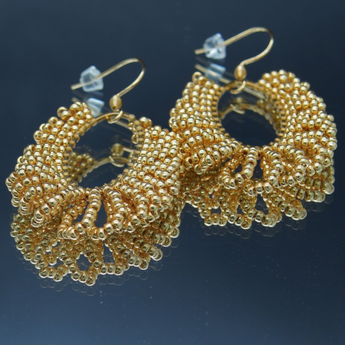 Boucles d’oreilles en perles tissées, reflets profonds