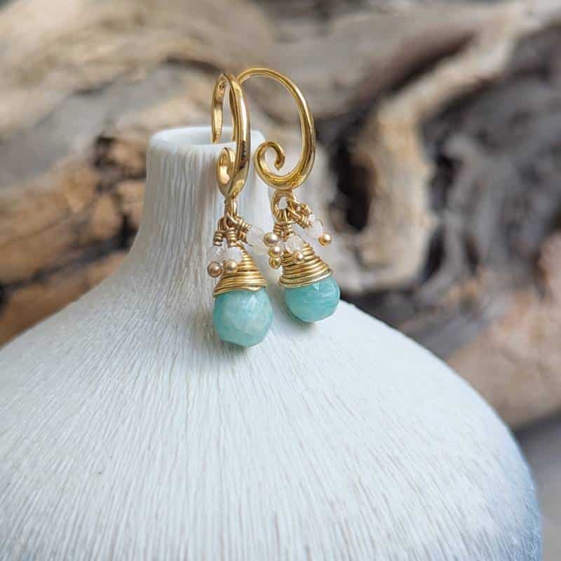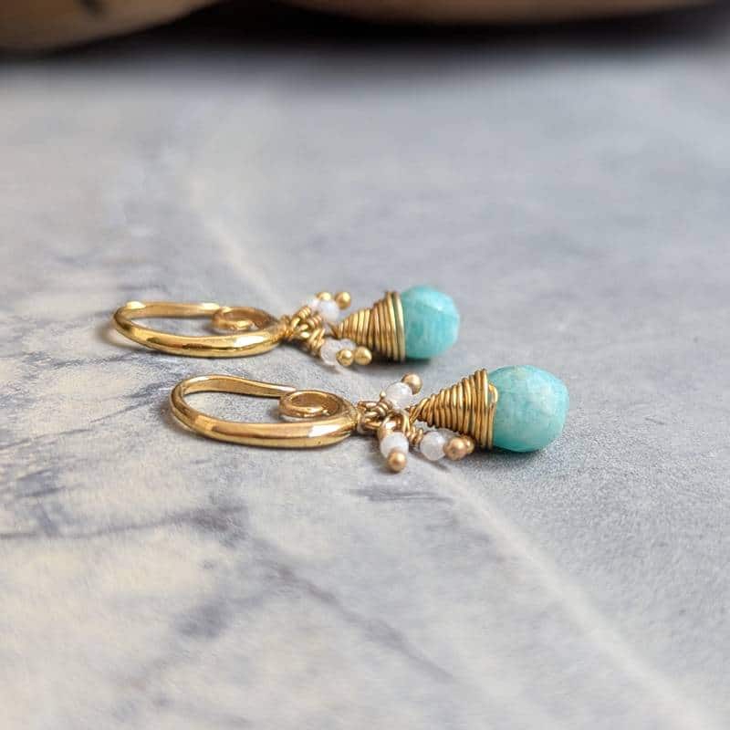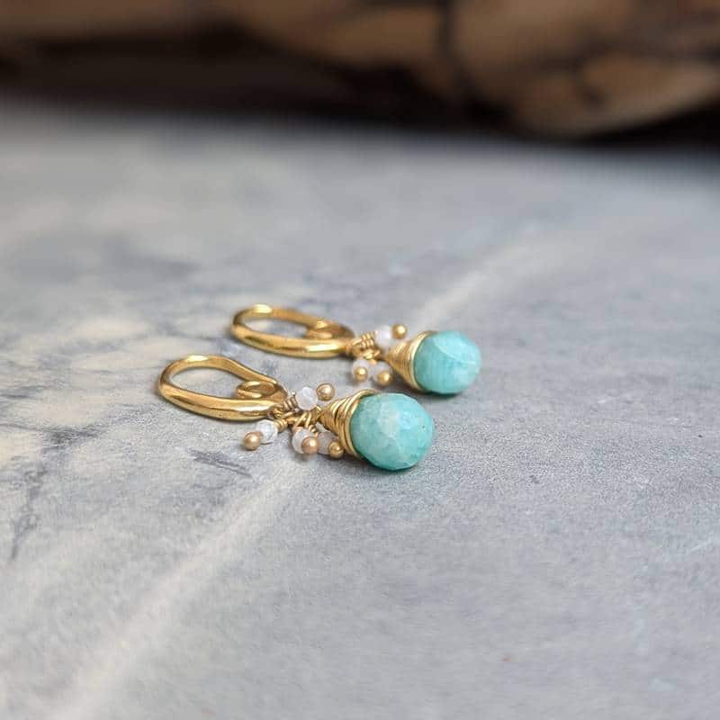 Caractéristiques des boucles d’oreilles en amazonite dorées AJMER