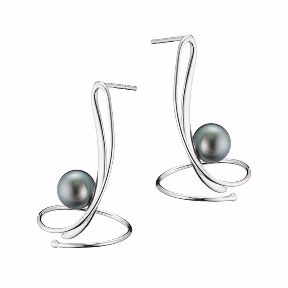 Chaque boucle d’oreille en argent est ornée d’une perle de Tahiti d’un diamètre de 8 à 9mm.