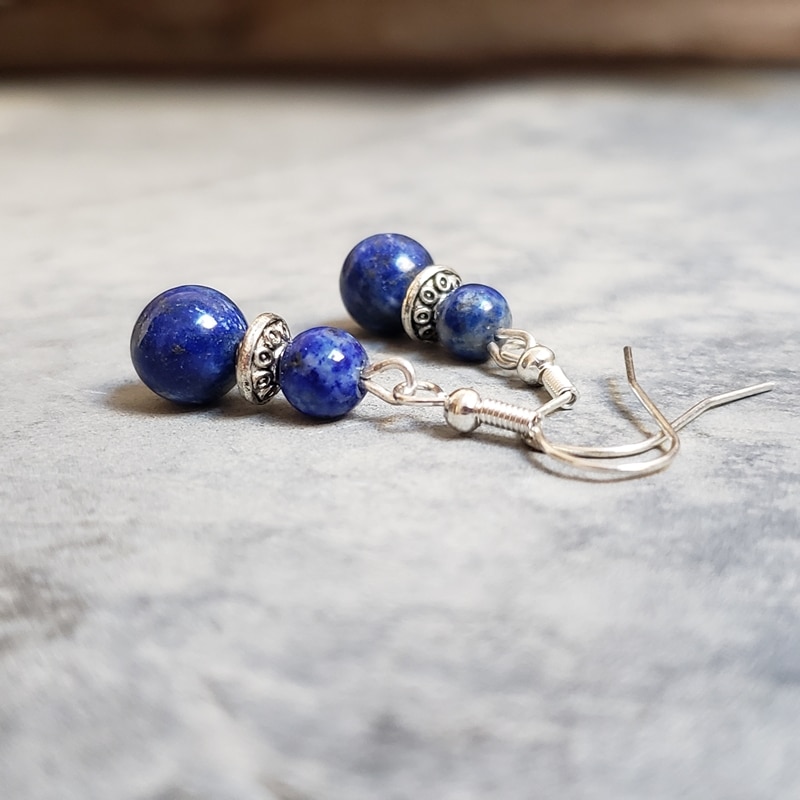 Les boucles d’oreilles lapis lazuli AFGHANE ont été fait-main au Népal. Elles sont composées de pierres semi-précieuses de lapis lazuli au bleu profond rappelant l’océan. Un petit apprêt travaillé apportent une touche délicate au modèle. Entièrement fait-main par Mahesh, notre artisan-partenaire à Katmandou, au Népal, ces boucles portent les valeurs du commerce équitable.