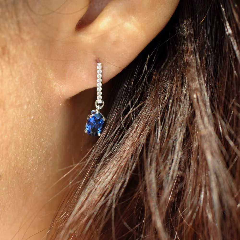 Boucles pendantes Elsa Lee Tradition Saphir, argent, oxydes