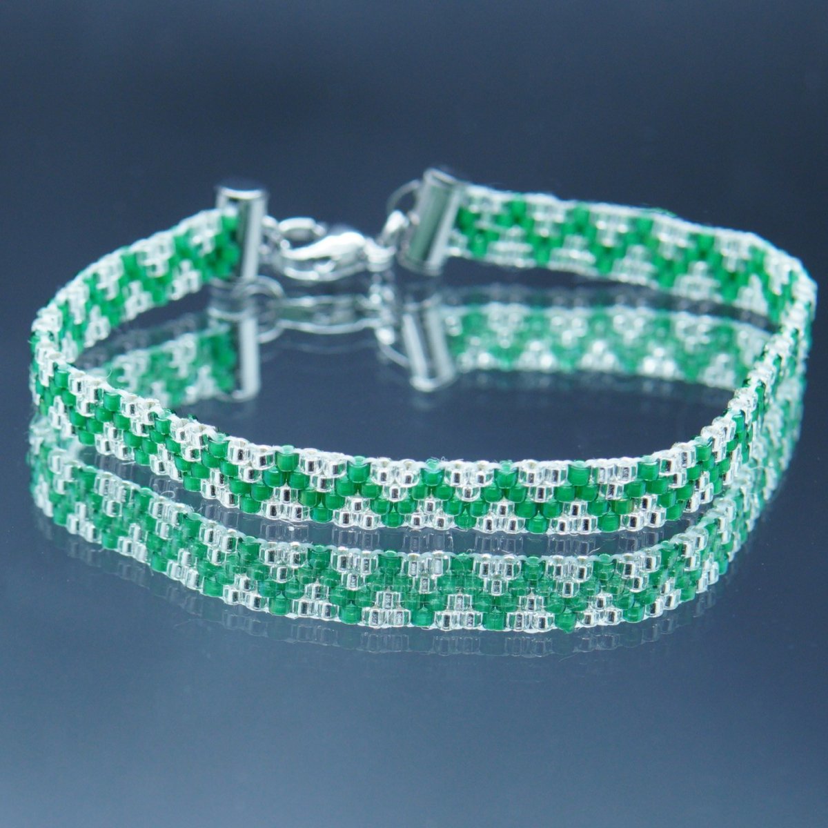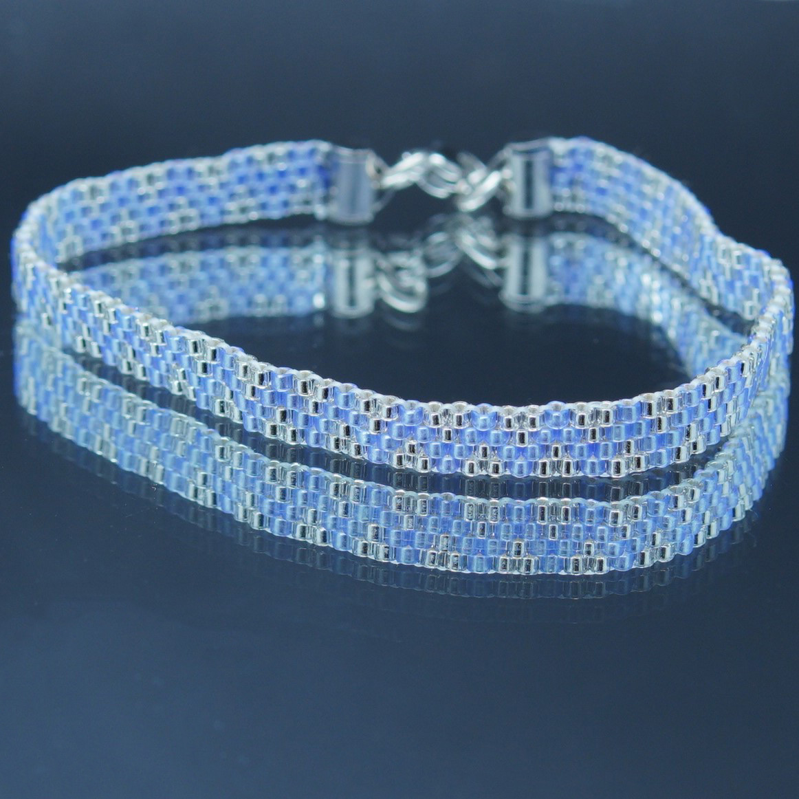Composé de perles Delica Miyuki soigneusement assemblées sur 4 rangs, ces bracelets présentent des motifs triangulaires raffinés et variés qui captent la lumière avec élégance.