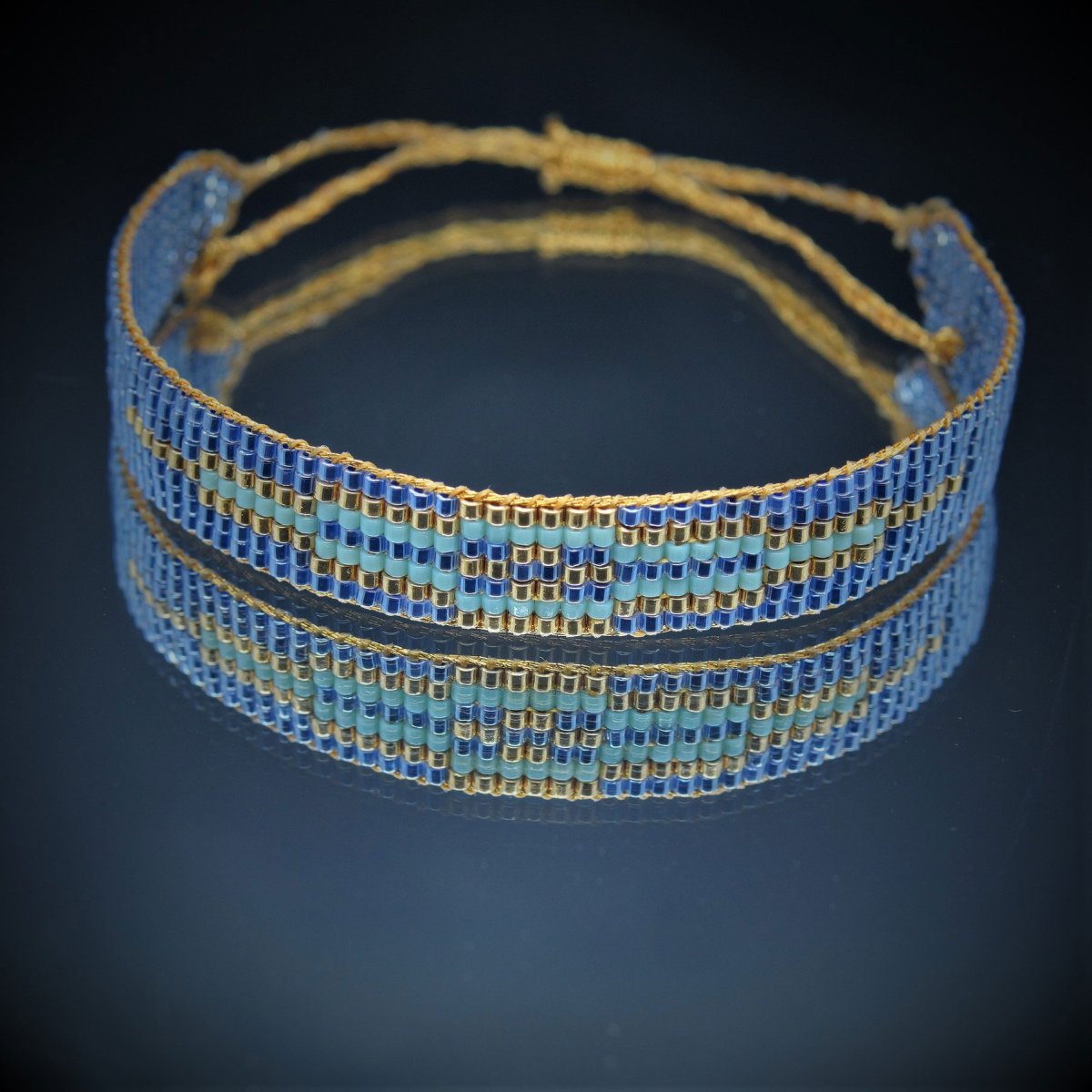 - Design et Fabrication : Fabriqué en France, ce bracelet est réalisé avec des perles de Miyuki d’une grande finesse, formant des motifs géométriques élégants et contemporains.