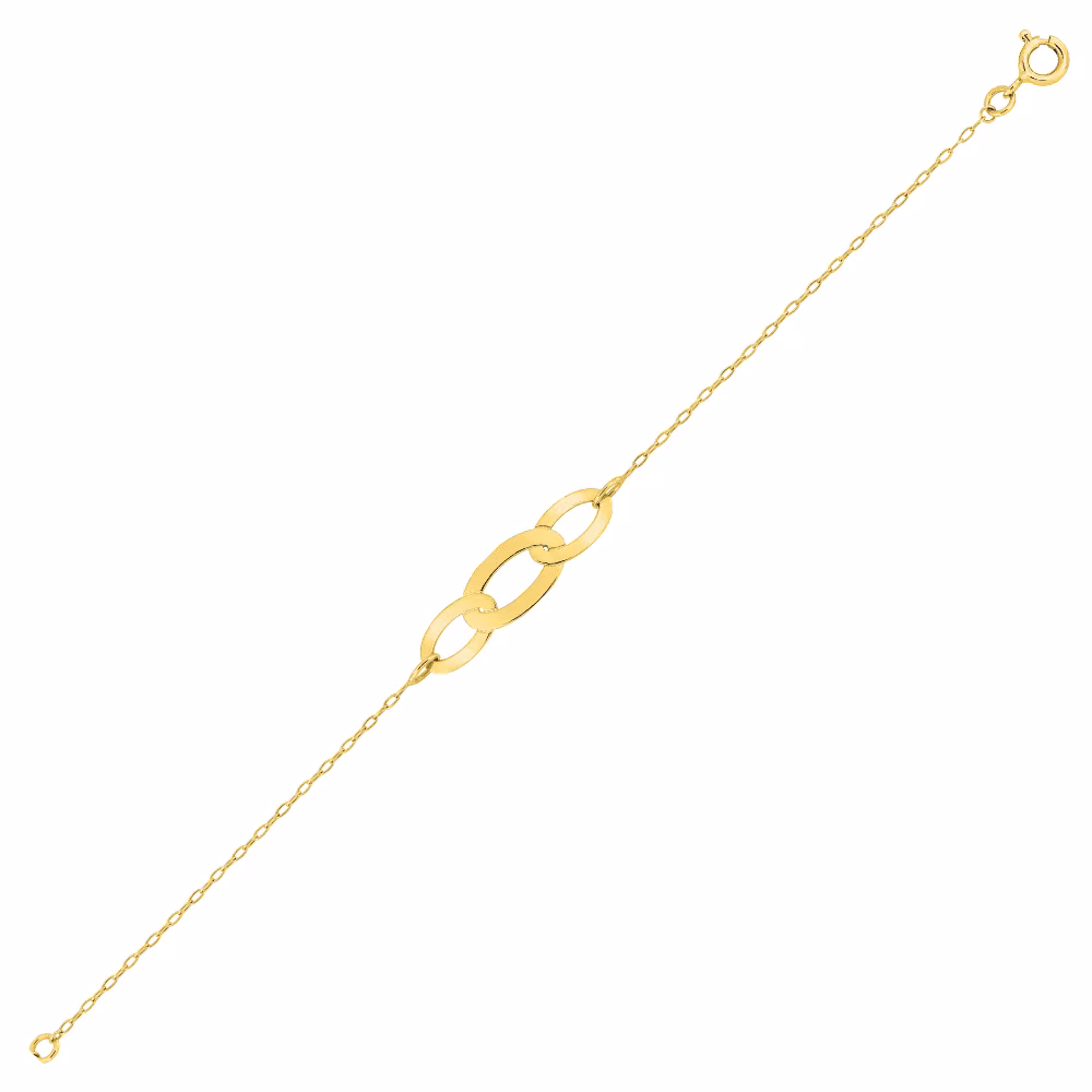 Plongez dans l’élégance intemporelle avec notre bracelet en or jaune et ses 3 maillons entrelacés, une pièce qui illuminera votre poignet avec une touche de luxe.