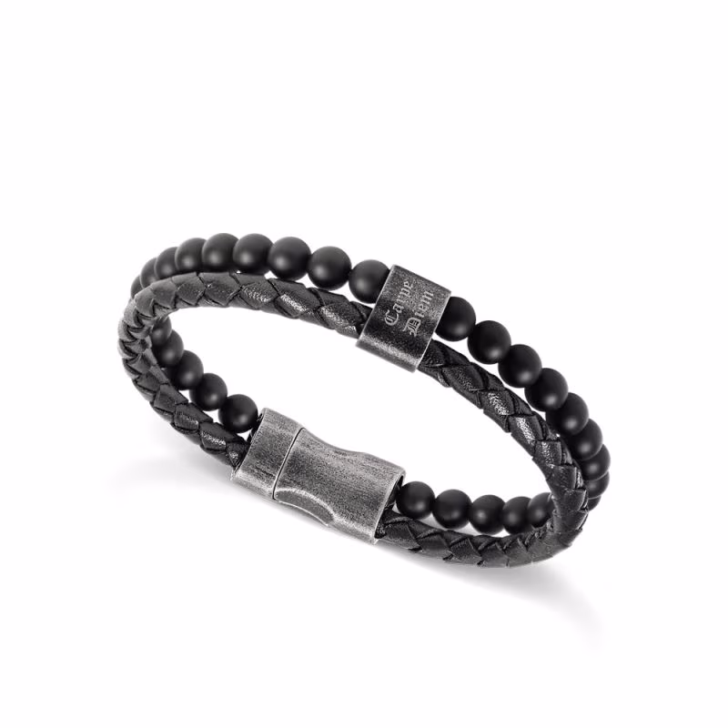 - Cuir Noir Tressé : Un autre rang du bracelet est composé de cuir noir tressé de haute qualité, ajoutant une touche de masculinité et de durabilité.