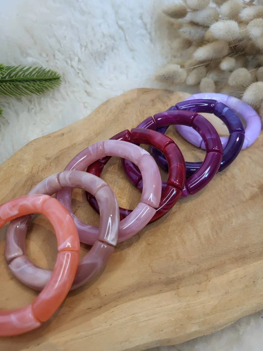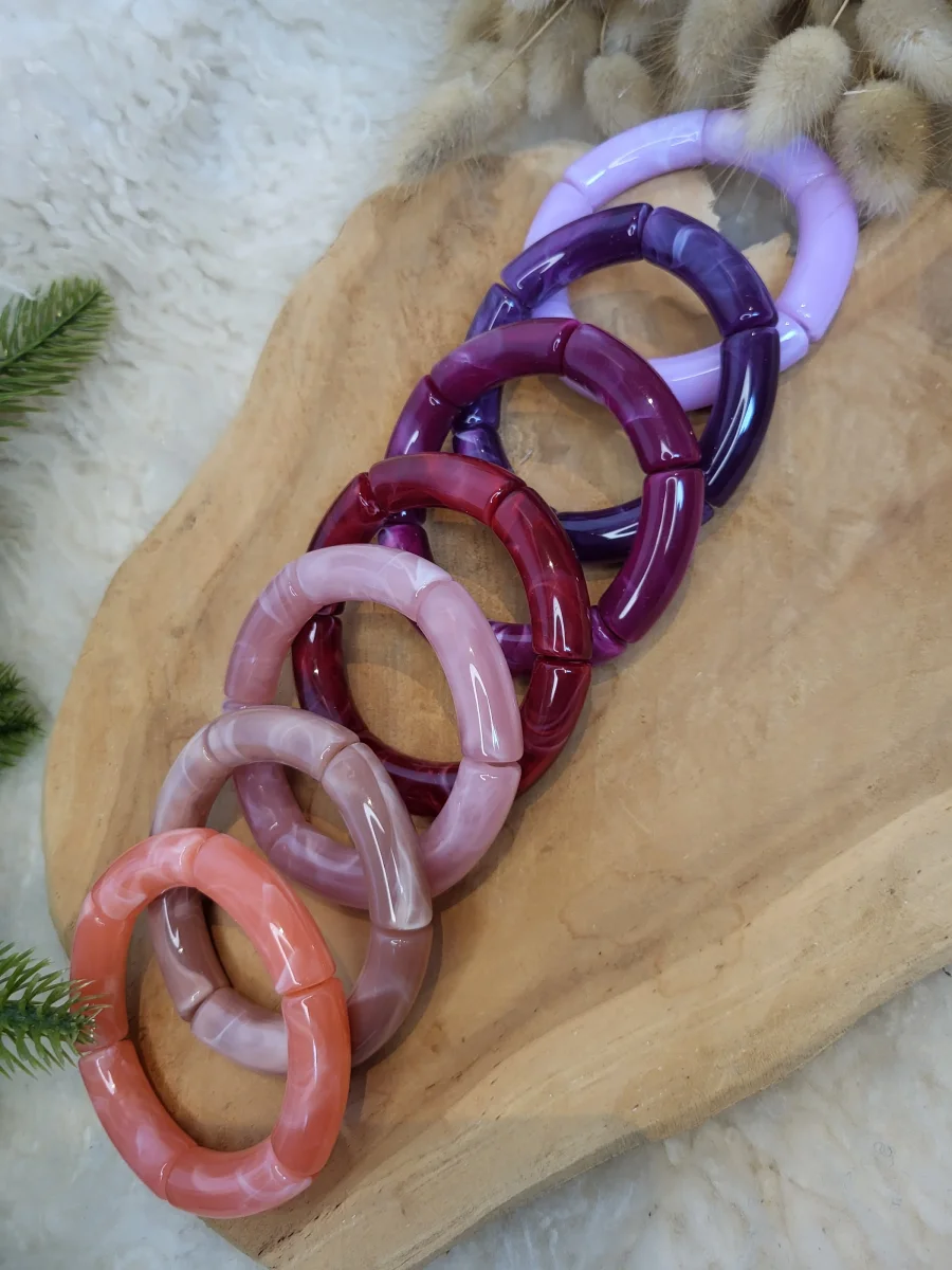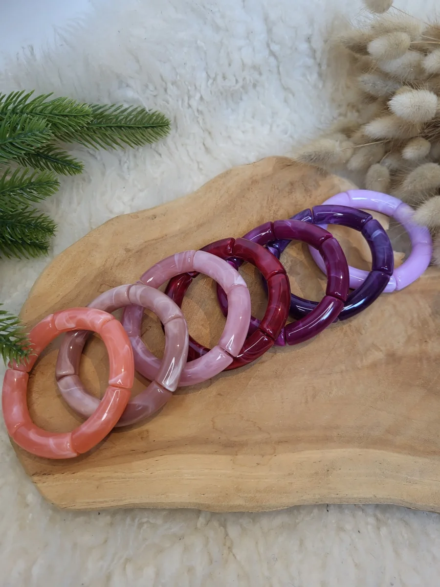 Bracelet élastique jonc tons rose, corail, violine, lila, violet