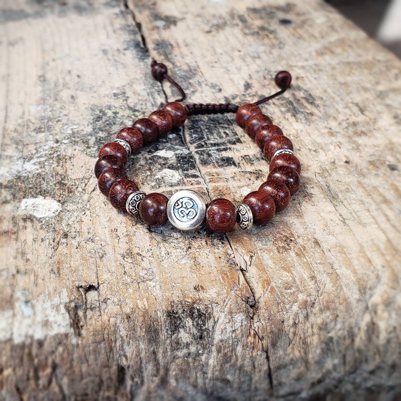 Le bracelet en bois de rose OM est un bijou fait-main au Népal. Ce bois exotique, aussi appelé Sheesham, est très en vogue, avec ses tons chauds et doux. Le Om qui orne le centre du bracelet est un symbole bouddhiste. C’est la syllabe qui représente le son originel, à partir duquel l’Univers se serait structuré. Dans le bouddhisme et l’hindouisme, le Om précède de nombreux mantras (prières), servant de support à la méditation. En yoga le Om est utilisé pour canaliser l’esprit et se recentrer sur sa pratique, en début et en fin de séances.