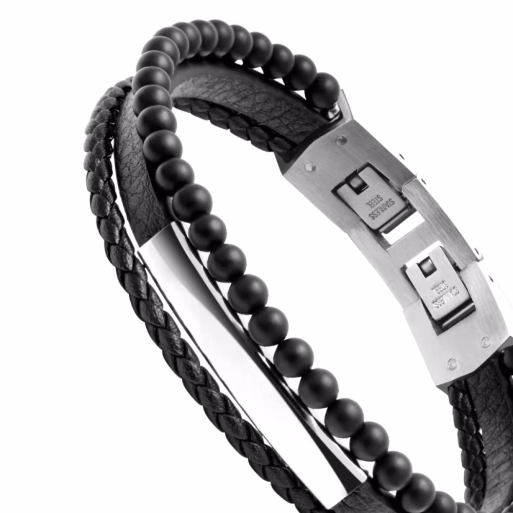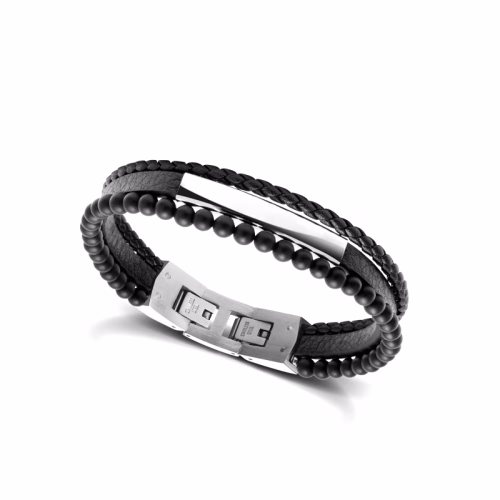 [vc_row][vc_column][vc_column_text] Bracelet pour homme en cuir et agates noires Rochet Yale Le bracelet pour homme de la marque Rochet, de la collection Yale, est un accessoire raffiné et moderne. Il se compose de trois rangs distincts : un brin en cuir tressé, un brin en cuir plat agrémenté d’un insert en acier poli, et un […]
