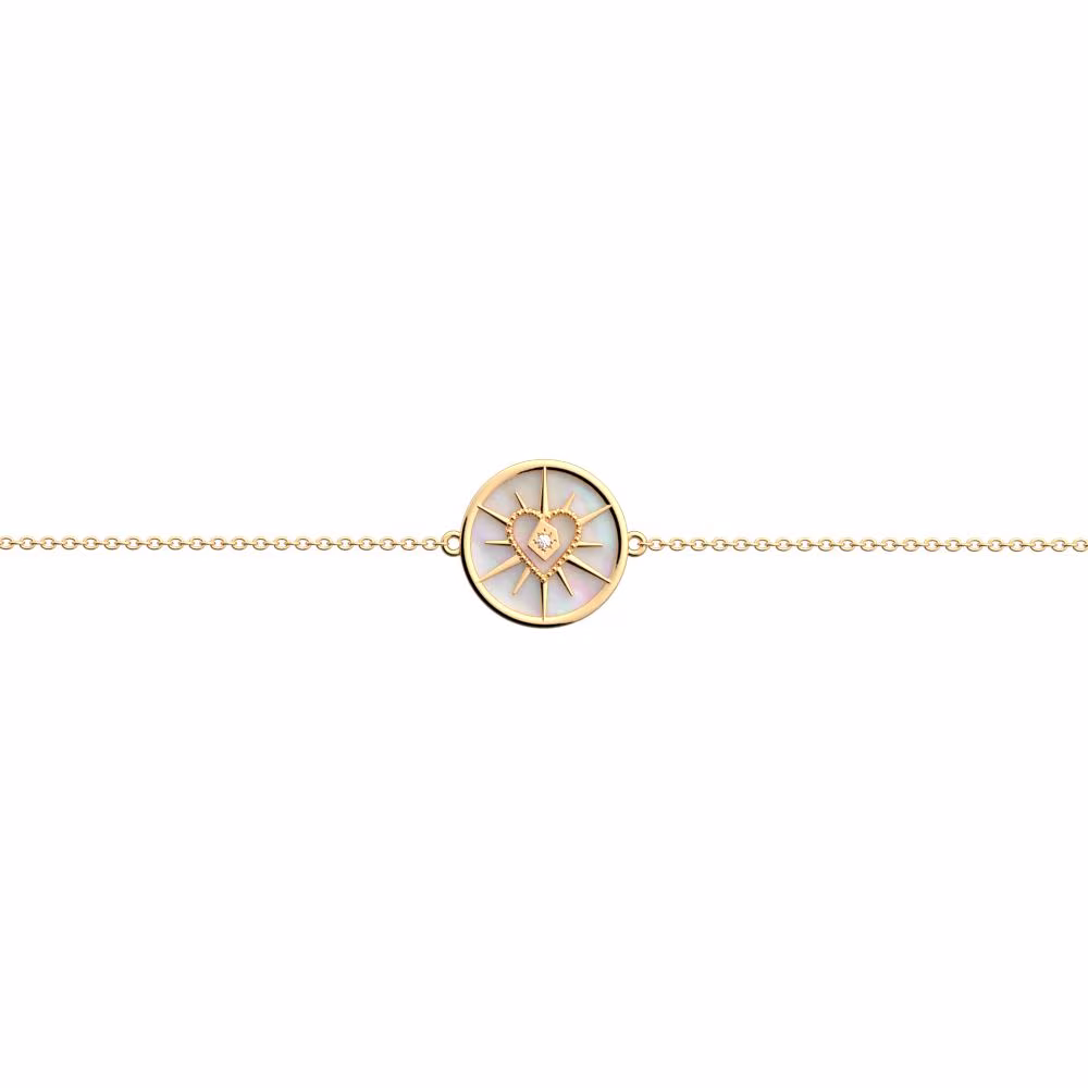 Le bracelet Les Georgettes, de la collection Bonheur Nacré, incarne délicatesse et élégance. Son motif ajouré en forme de soleil cœur, sublimé par un fond de nacre, apporte une touche lumineuse et raffinée à votre poignet. Grâce à sa longueur ajustable entre 16 et 20 cm, il s’adapte parfaitement à votre morphologie pour un confort optimal au quotidien.[/vc_column_text][/vc_column][/vc_row][vc_row][vc_column]
