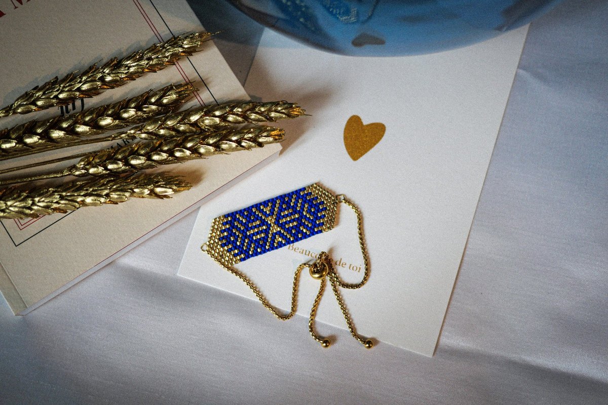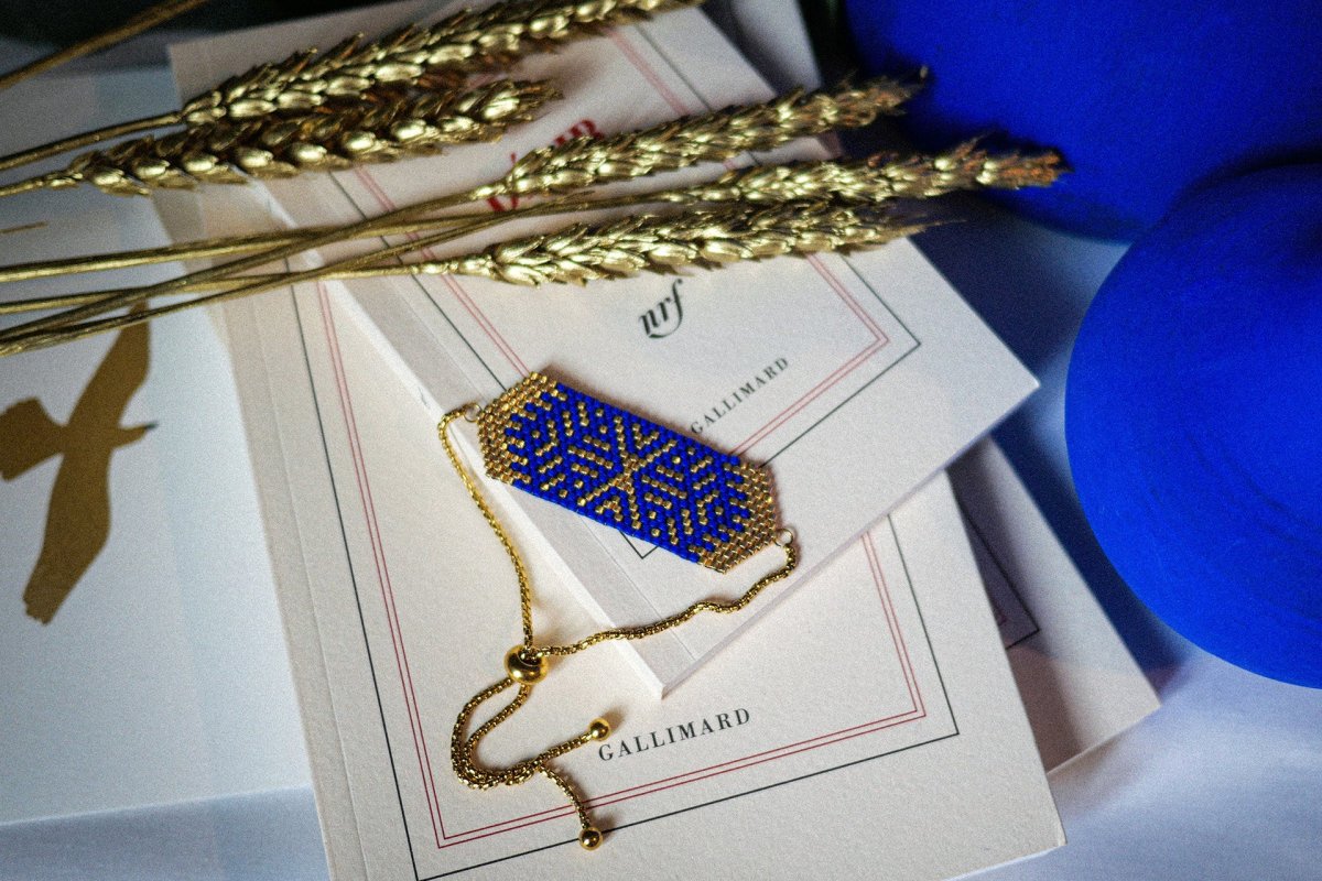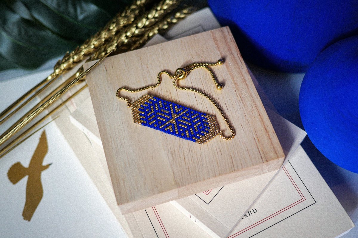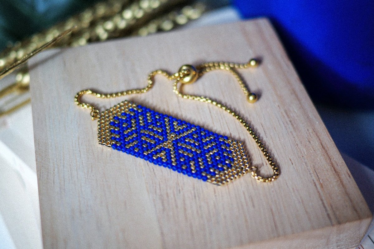 – Perles Miyuki Delicas 11/0 doré et bleu majorelle mat