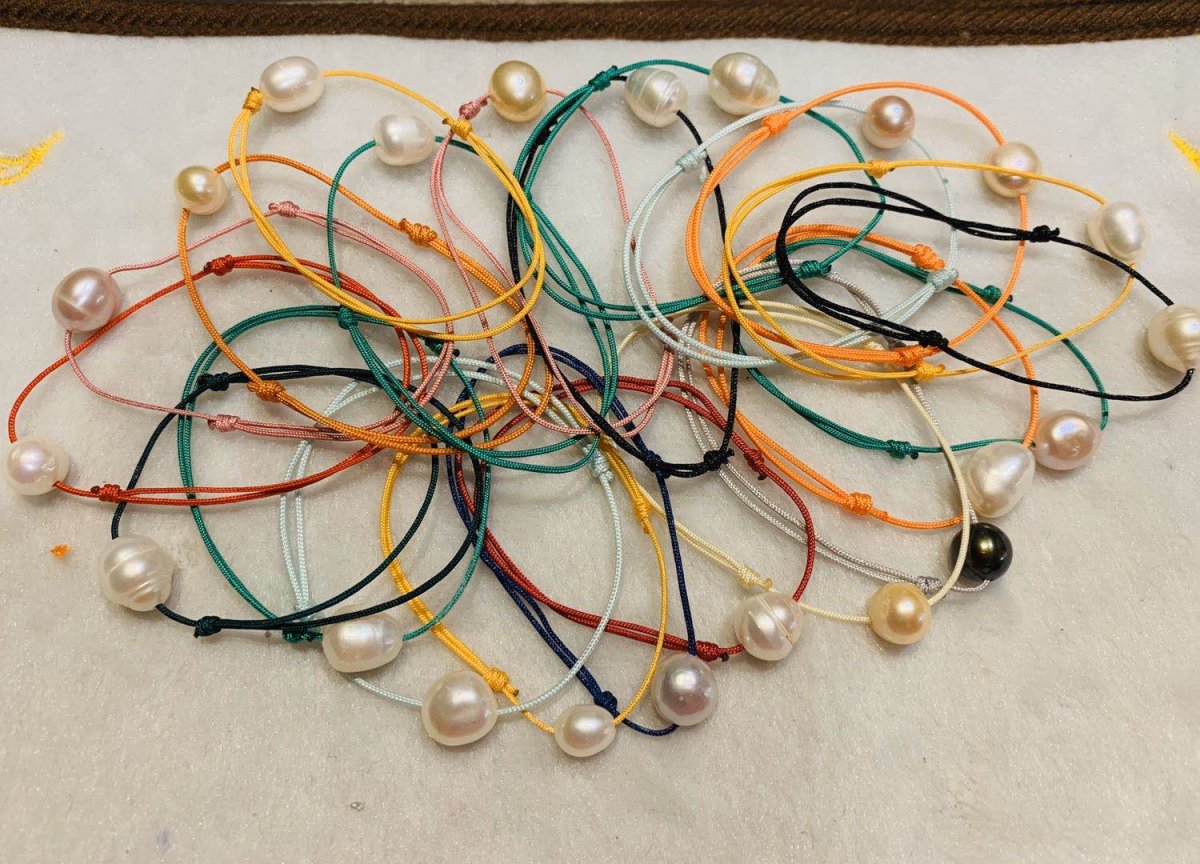 Bracelet avec une perles d’eau douce naturel blanche avec cordon reglable