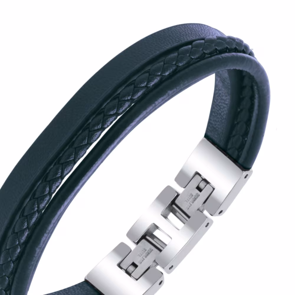 Le bracelet pour homme de la marque Rochet, issu de la collection Stanford, est une pièce élégante et moderne. Il se compose de trois brins distincts de cuir bleu : un brin rond, un brin tressé, et un brin plat, chacun apportant une texture unique et un contraste visuel subtil. Le tout est rehaussé par un fermoir en acier poli, ajoutant une touche de sophistication et de durabilité à ce bijou raffiné. Ce bracelet est parfait pour l’homme contemporain recherchant un accessoire à la fois stylé et classique.