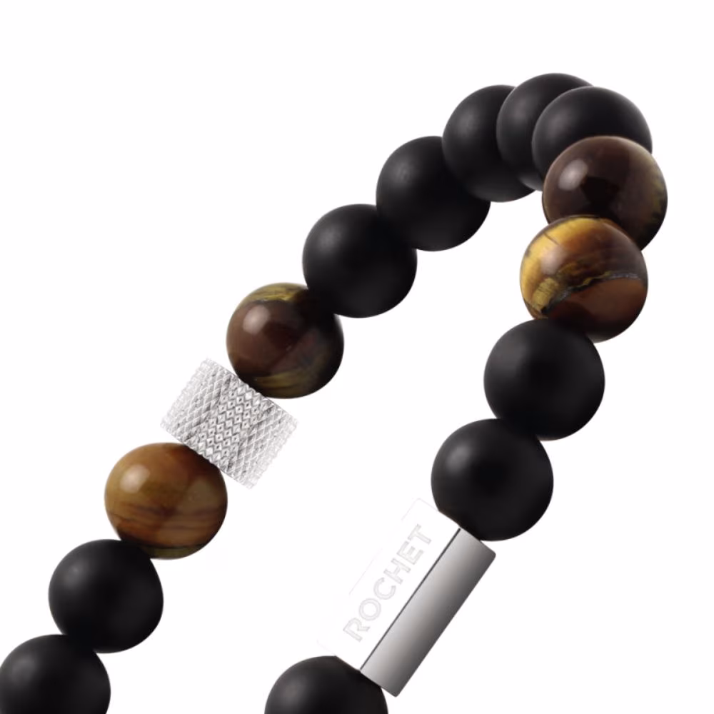 Bracelet pour homme Rochet Zen en oeil de tigre et agates noires