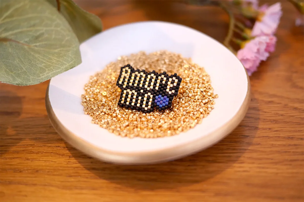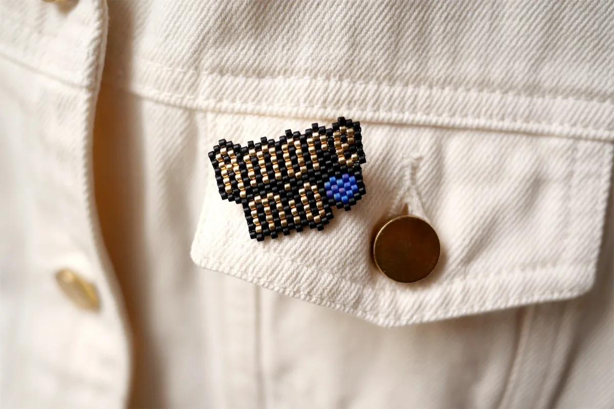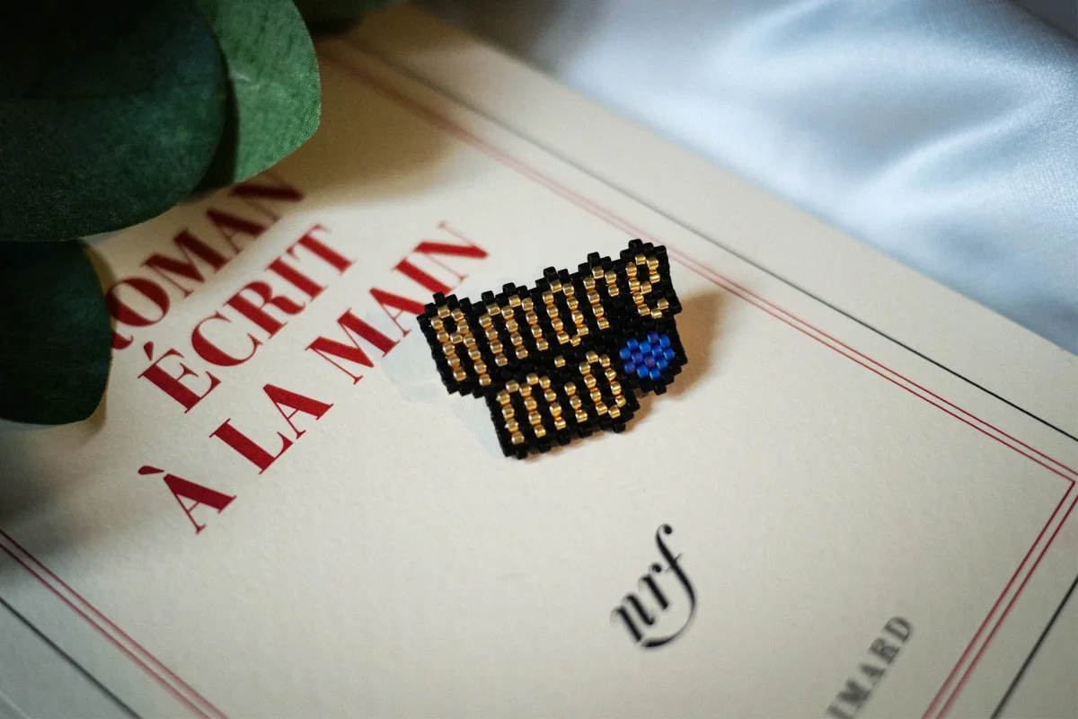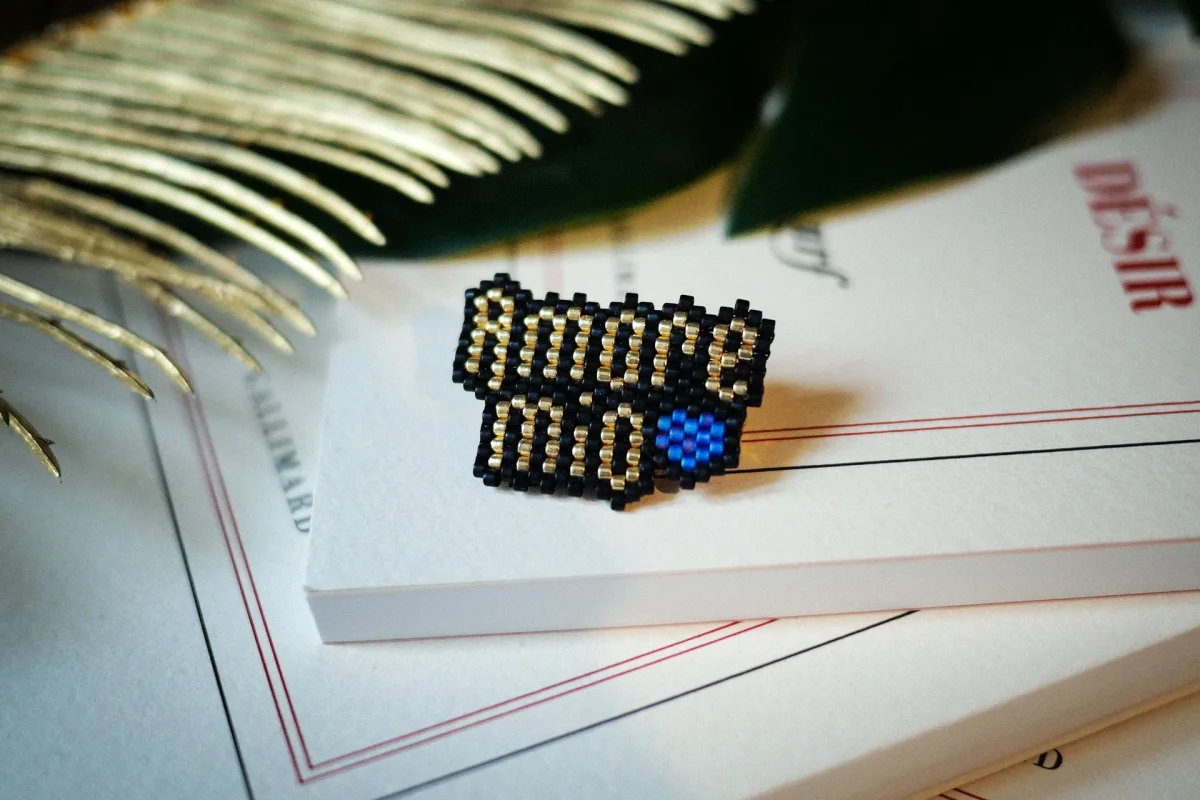 Technique du tissage façon Brickstitch, qui consiste à enfiler les perles une par une solidement. Cette technique complexe donne un rendu plus résistant, qualitatif et élégant.