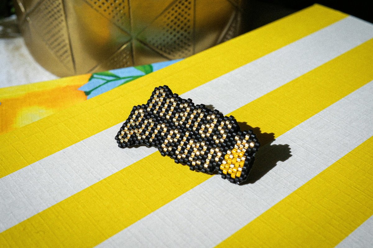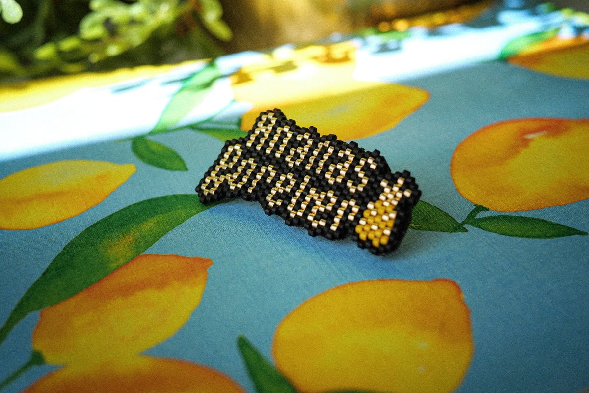 Technique du tissage façon Brickstitch, qui consiste à enfiler les perles une par une solidement. Cette technique complexe donne un rendu plus résistant, qualitatif et élégant.