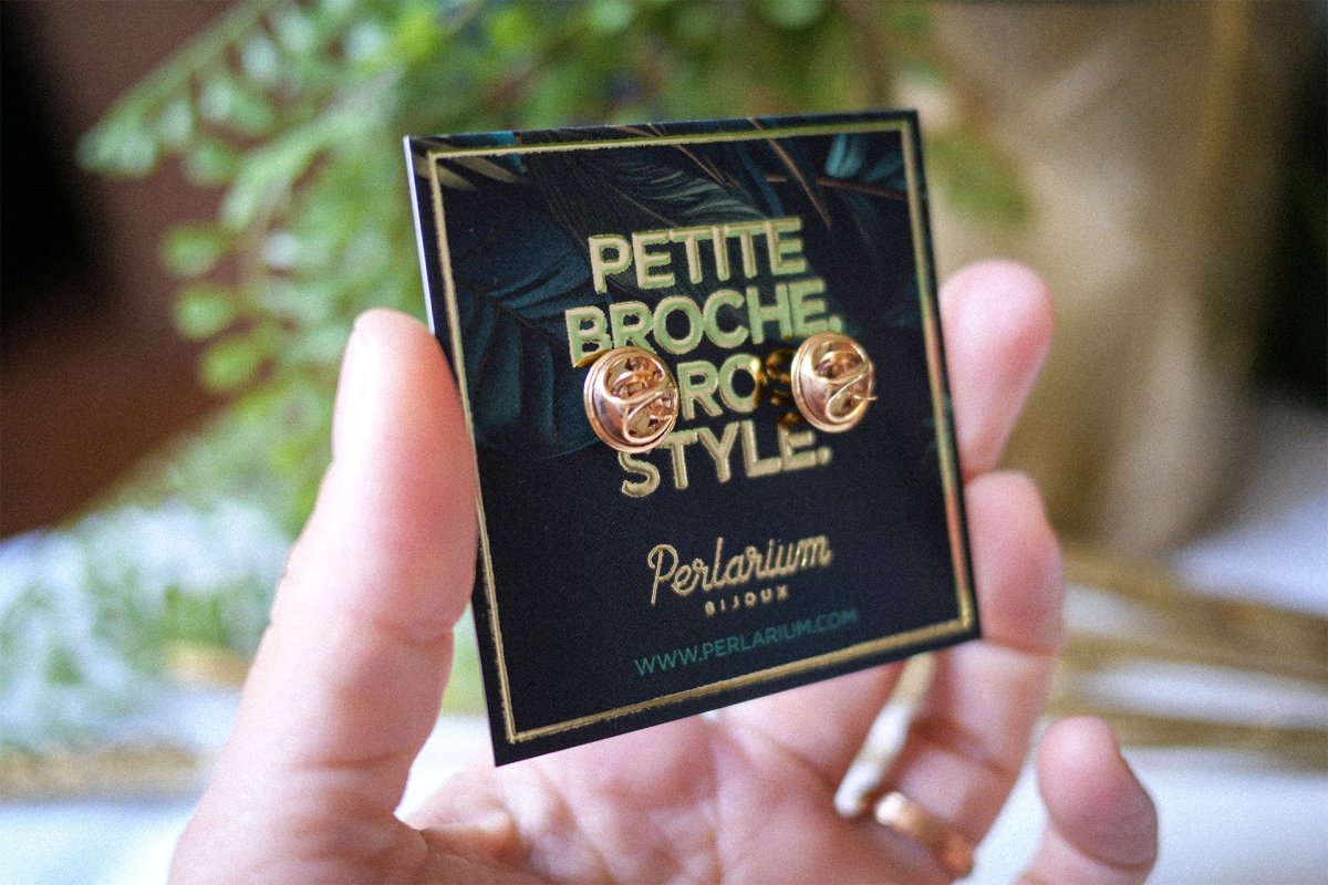 Fabriquée avec soin, elle est équipée d’une double accroche et d’un renfort au dos pour une tenue parfaite, même sur les tissus les plus capricieux. Parfaite pour une veste en jean, un tote bag ou un pull un peu trop sage.