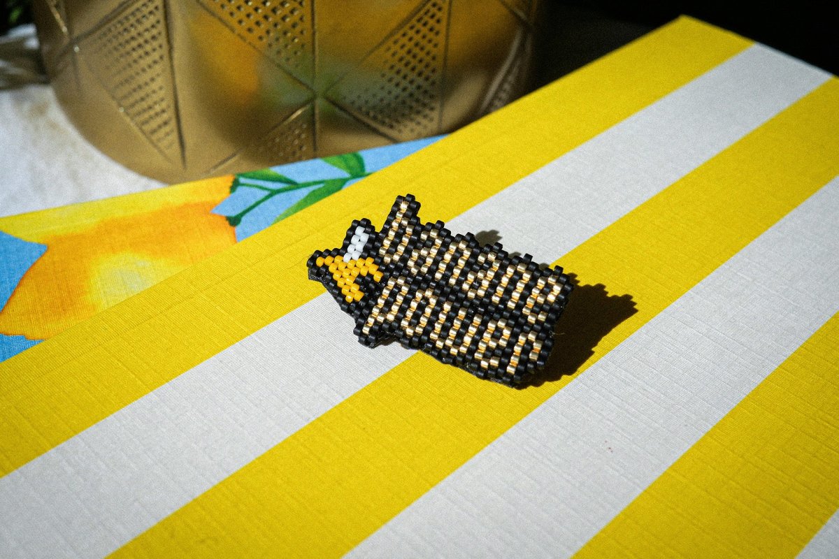 Technique du tissage façon Brickstitch, qui consiste à enfiler les perles une par une solidement. Cette technique complexe donne un rendu plus résistant, qualitatif et élégant.