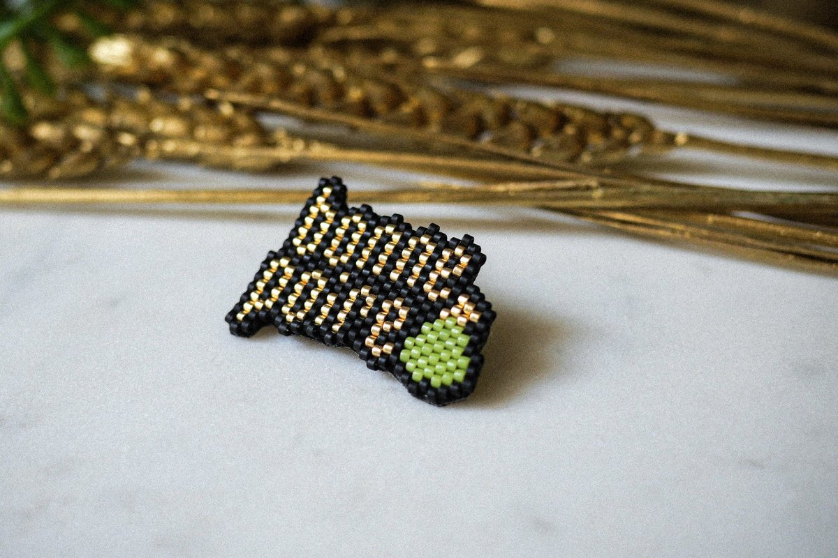 Technique du tissage façon Brickstitch, qui consiste à enfiler les perles une par une solidement. Cette technique complexe donne un rendu plus résistant, qualitatif et élégant.