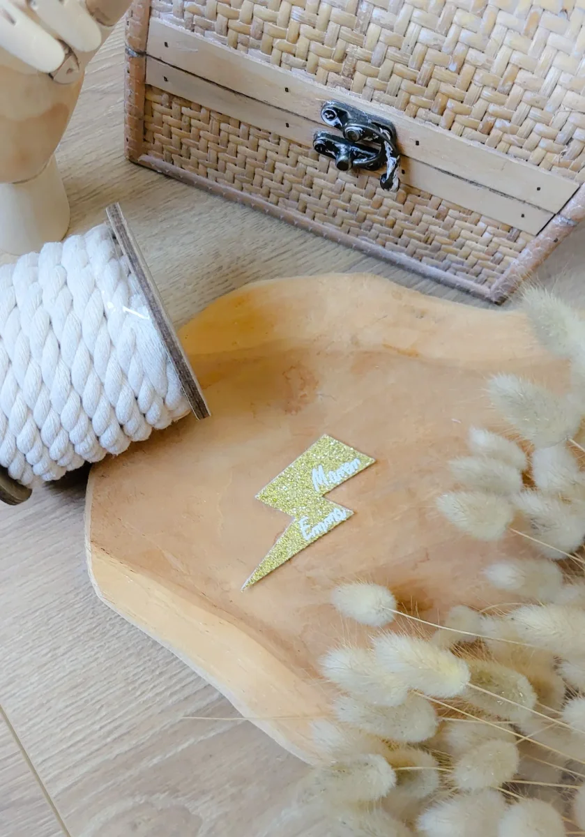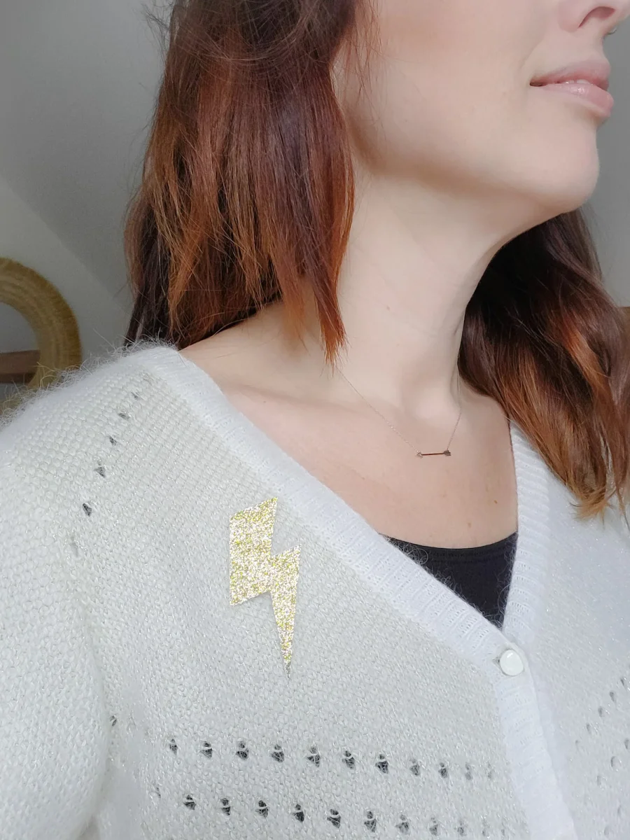 Broche éclair en paillettes personnalisable avec vos jolis mots!