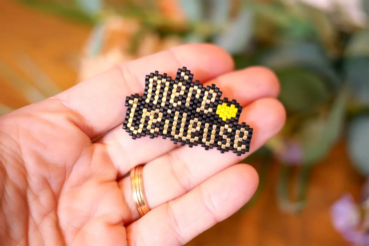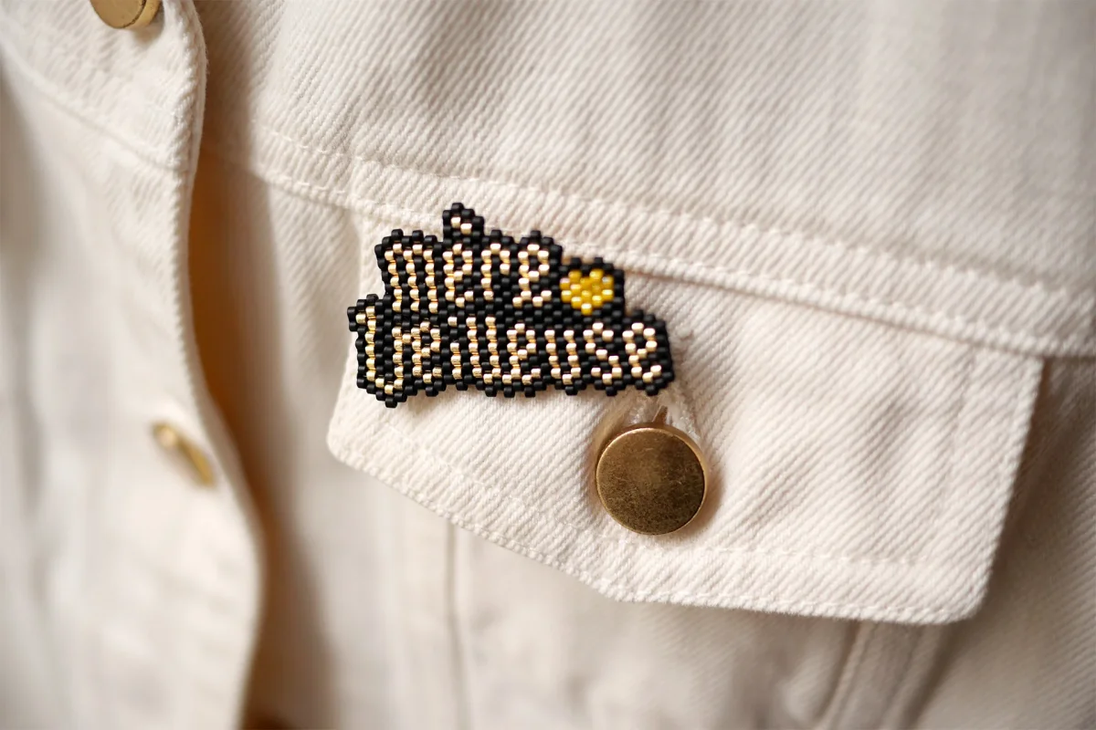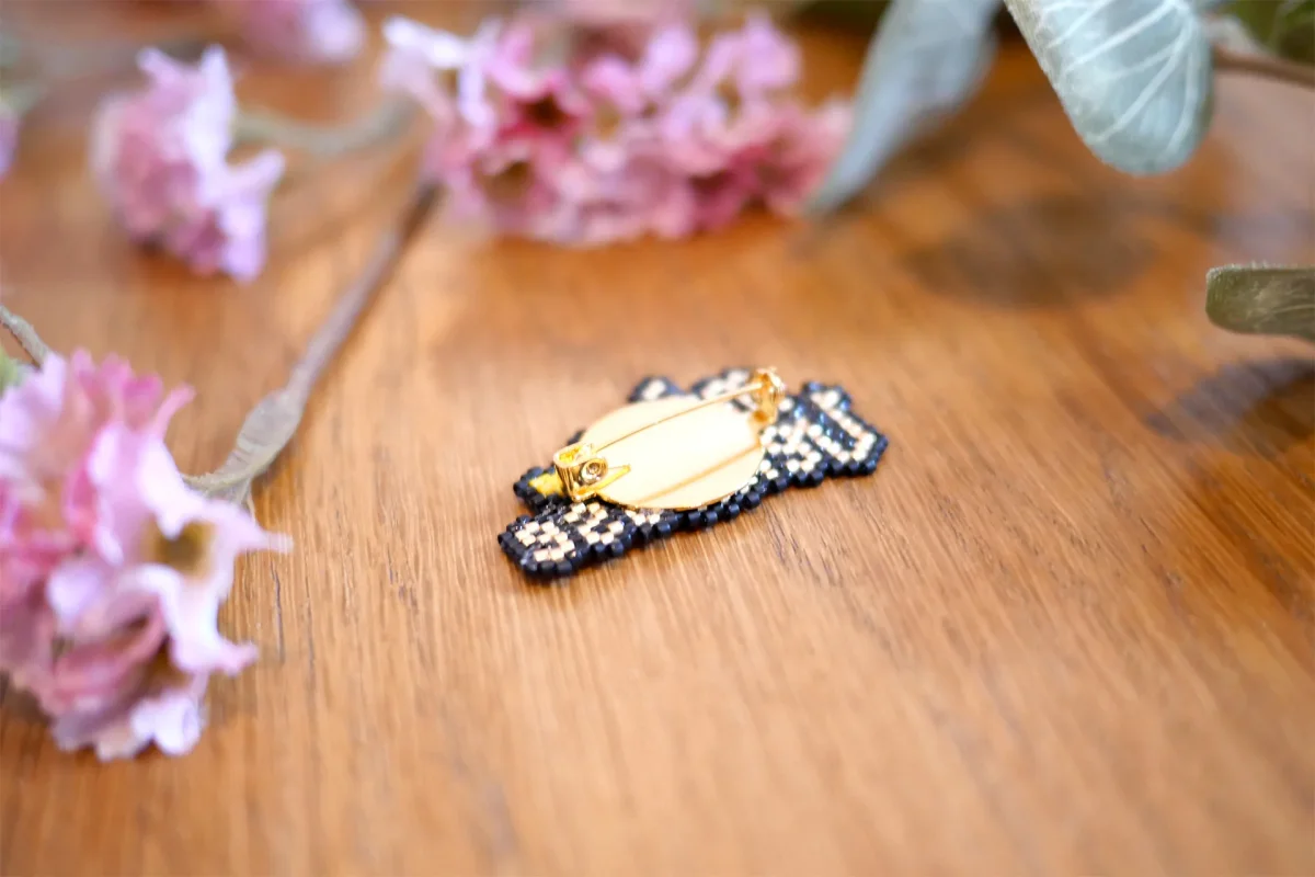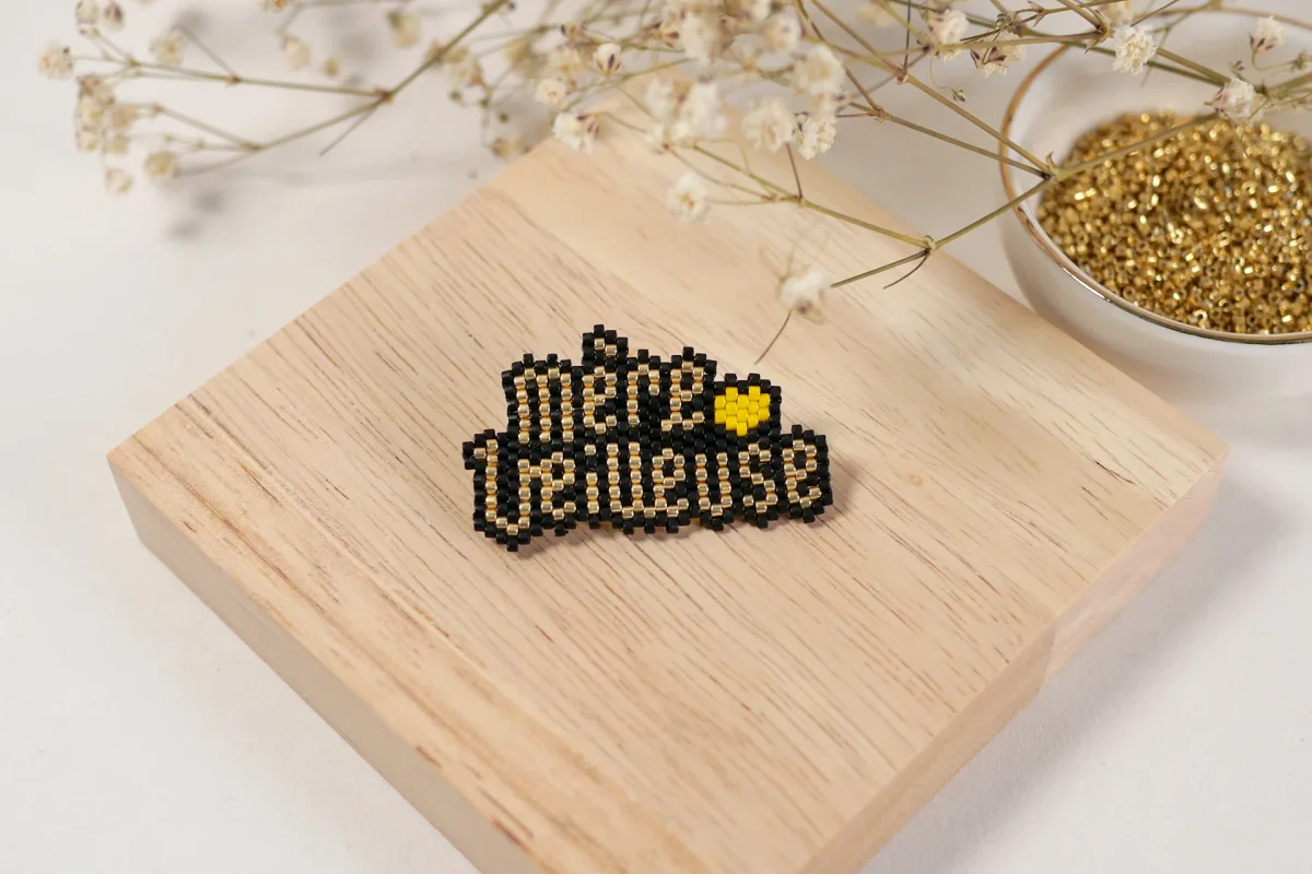 Style Fun / Pop / Mère Veilleuse ! Bijou 100% tissé à la main avec amour ! Matériaux :– Perles Miyuki Delicas 11/0 – Support de broche doré avec dispositif de sûreté, sans plomb / sans nickel / sans cadmium Technique du tissage façon Brickstitch, qui consiste à enfiler les perles une par une solidement. […]