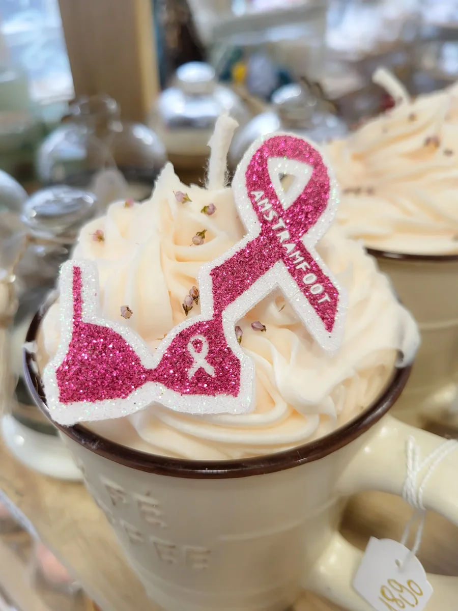 A chaque achat, 5€ sont reversés à l’association en faveur de la lutte contre le cancer du sein.