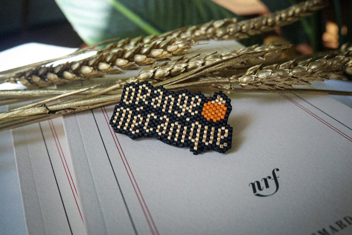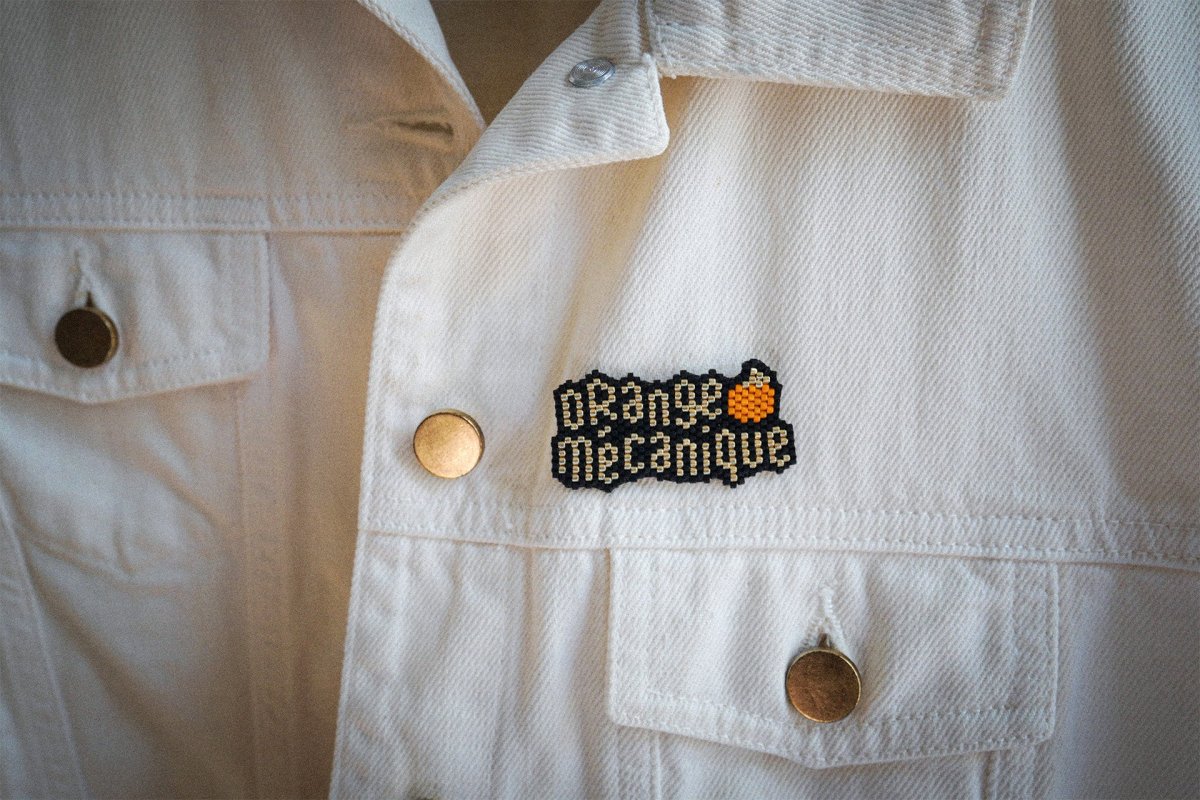 Clin d’œil fruité (et un peu décalé) au film culte, cette broche Orange Mécanique joue sur les contrastes : du fruit, du fun, et une touche de folie.